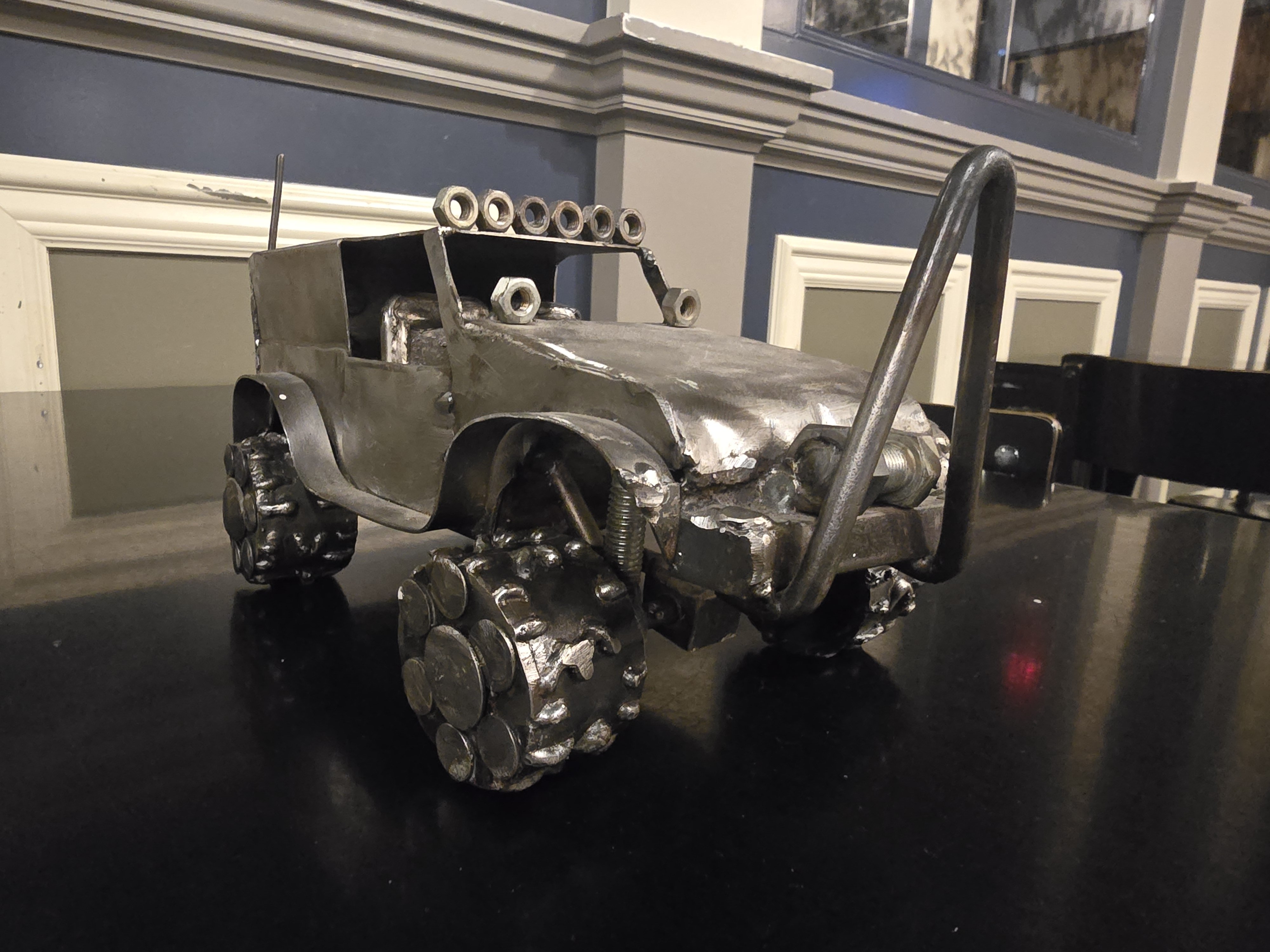 Look at the handcrafted 4X4 toy. It has plenty of visual character.