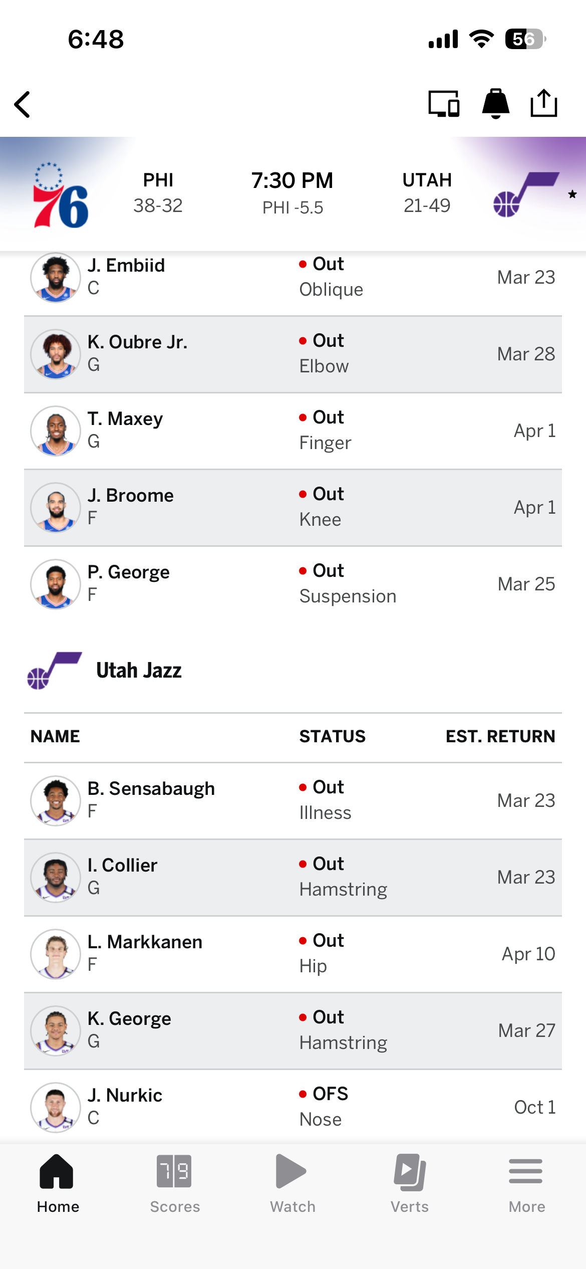 Look at this “injury” report. Ridiculous. Sixers might be legit; Jazz are not. They should slash ticket prices but they won’t. Sixers win.