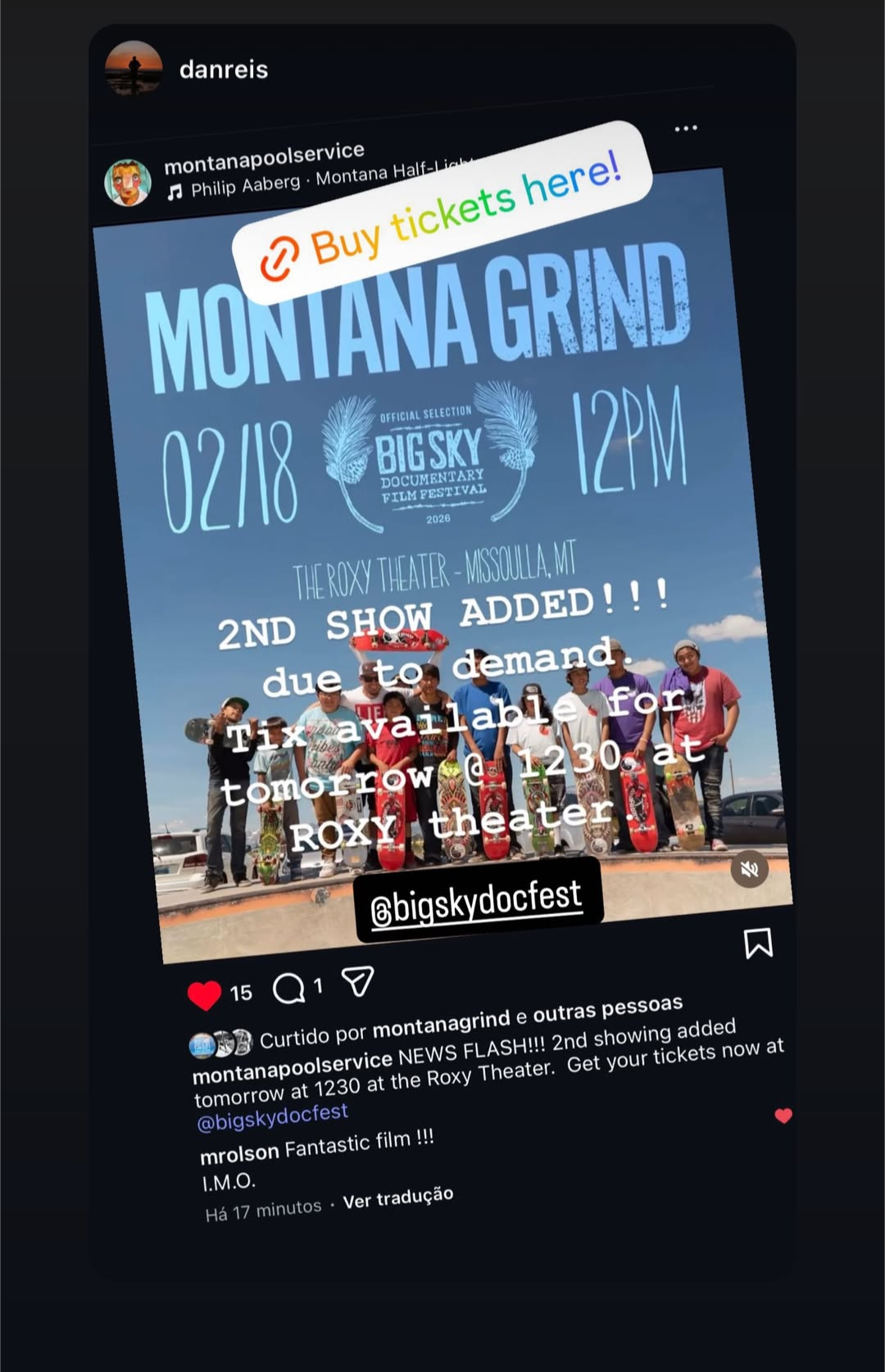 Hey! If you find yourself in Montana this weekend, join us in supporting two films at Big Sky Documentary Film Festival that celebrate how skateboarding builds community, identity, and creativity for young people across Montana.The films are deeply connected to Jeff and the Montana skate community, and feature those who’ve helped shape it over the years. MONTANA GRIND, directed by Dan Reis, captures a decade of skate culture across the state, focusing on a group of young Blackfeet skaters into adulthood; and PAVING THE WAY, directed by Keelan Williams, spotlights Indigenous youth on the Flathead Indian Reservation through the story of skater and artist Alishon Kelly.Paving The Way premieres February 15 at 5:30pm at The Wilma (Missoula, MT)Montana Grind screens February 18 at noon at the Roxy Theater (Missoula, MT)Tickets available via Big Sky Documentary Film Festival. If you can’t make it to the screenings in-person there are virtual tickets available.Montana Pool Service brings world-class skateparks to rural and isolated communities across Montana and the West, connecting youth through skateboarding and the arts. Learn more at montanapoolservice.comMuch love to Jeff.