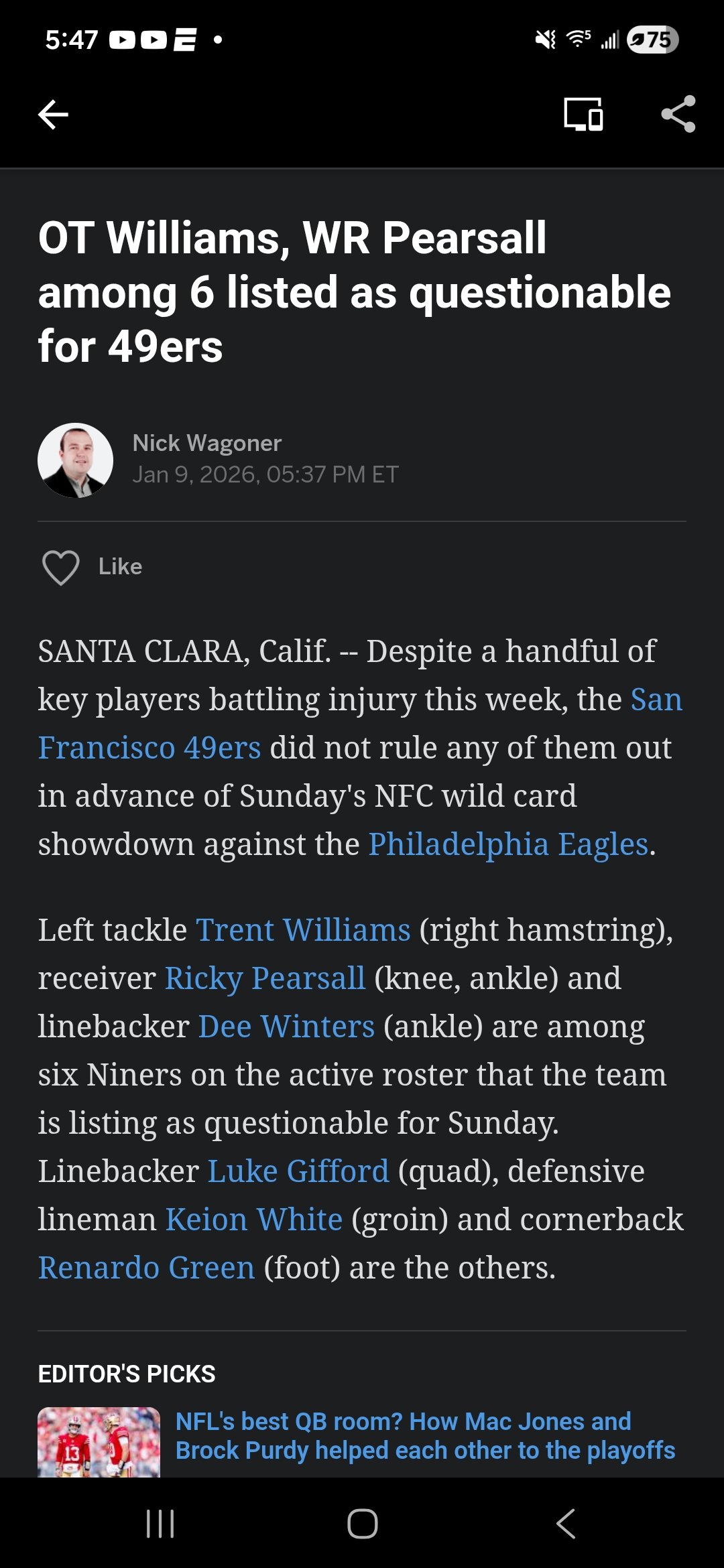 I have no idea what to expect in this game. If the defense shows up like last week, and the returning players on offense are a full go, I think they have a chance. I can however see it going sideways too, so you never know.F Me In The Brain said:Feeling like the Niners are going to lose by 500 points.