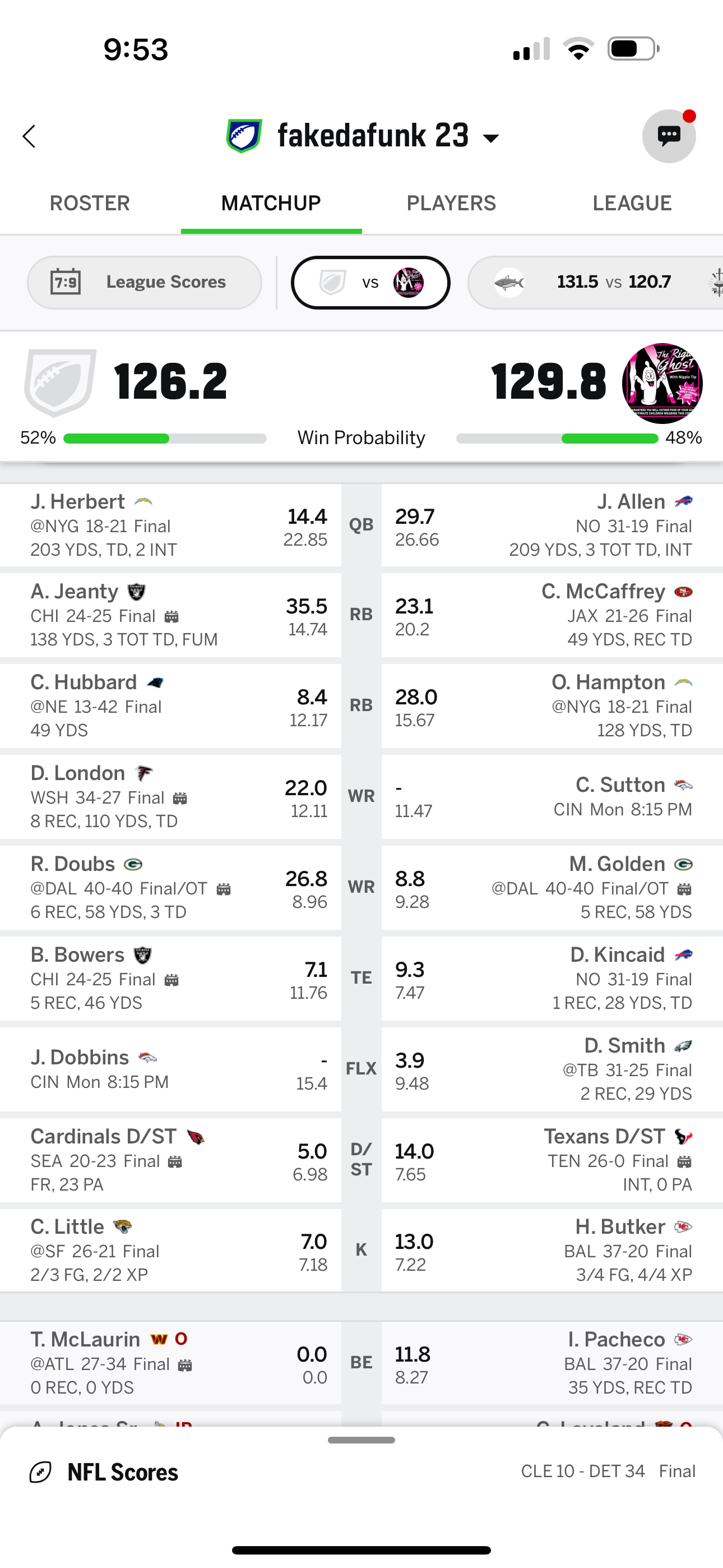 Lost my semi final matchup with Josh Allen, Saquon and Gibbs.  You have got to be kidding me!