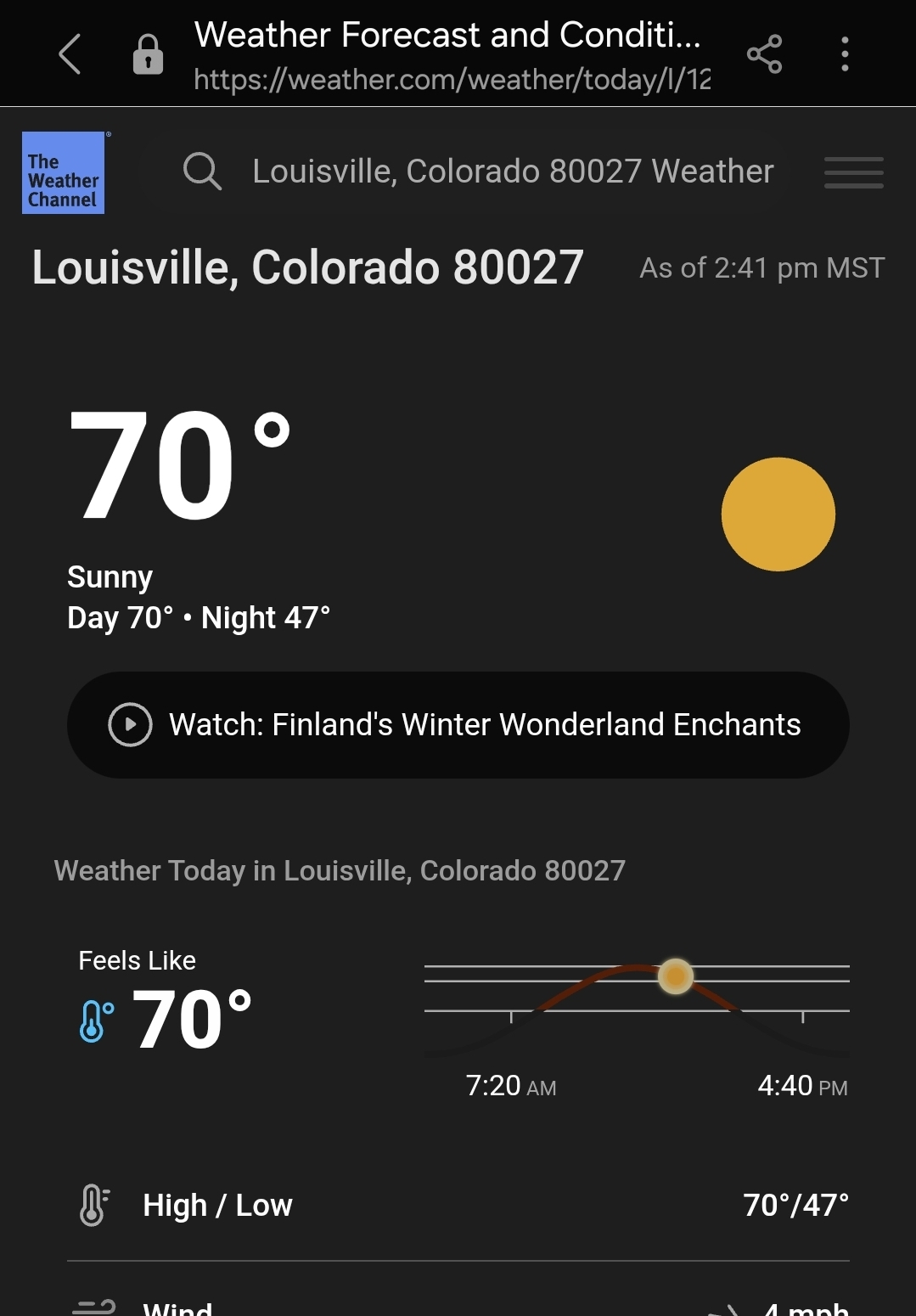 The encircled area is where I live with a predicted high of 68 today.