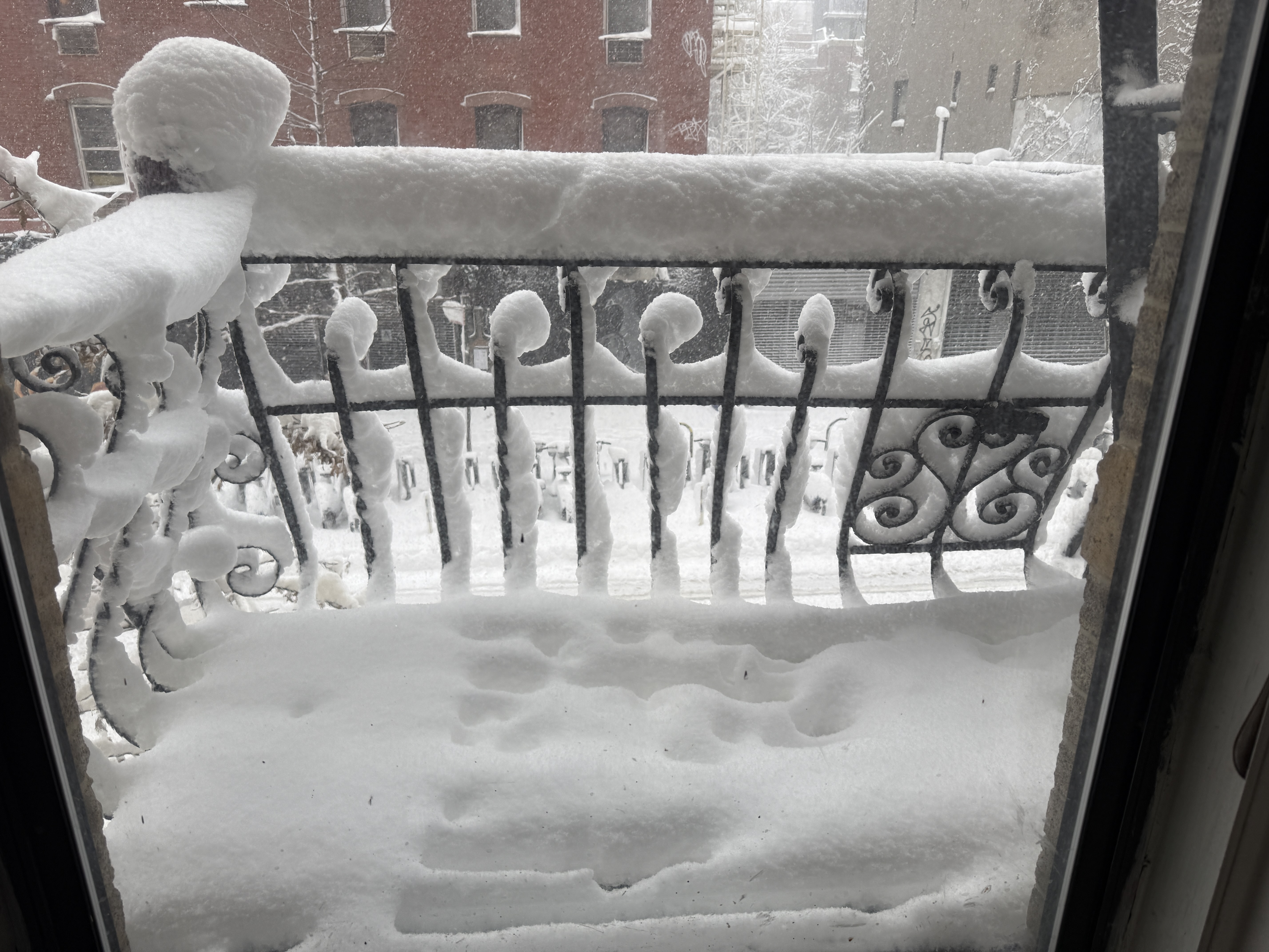 This is my fire escape right now. But it is still coming down like crazy. I am going to try to slog my way over to the gym in a few hours. It’s only 3 blocks away. I will take more photos once I get out there. It so pretty.0 -