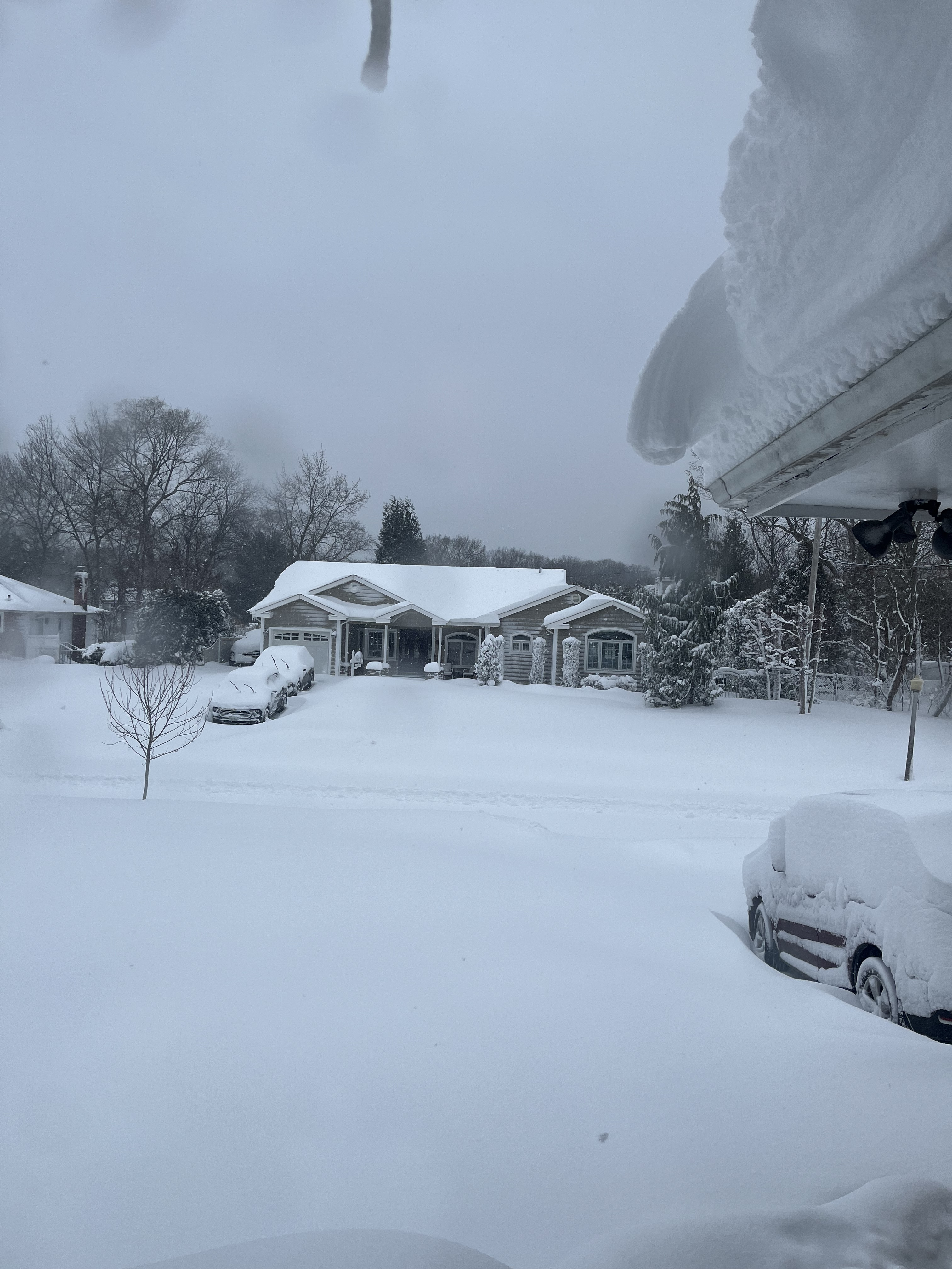 We have had snow on the roof and on the ground since Thanksgiving. Piles in the parking lots ten feet high. Dump trucks and front loaders have been brought in to remove snow. Worst winter in 30 years and this storm is a doozy. I do not mind it though. I only mind my heating bills this winter which have averaged $500 a month since November. And we have a small place!0