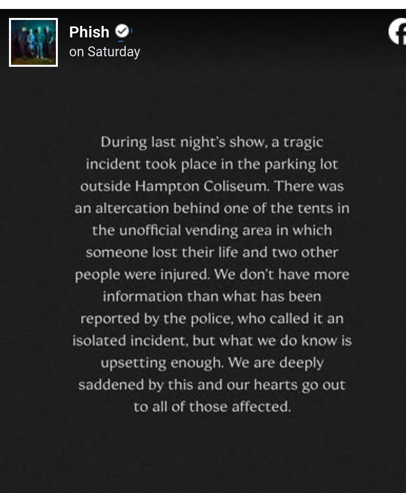 All good.  Apparently that happened at 930, middle of the show,  so I don't know what that was all about.  It wouldn't surprise me if it was locals harassing the vendors.  Hampton can be rough.  Haven't seen any updates on it though.