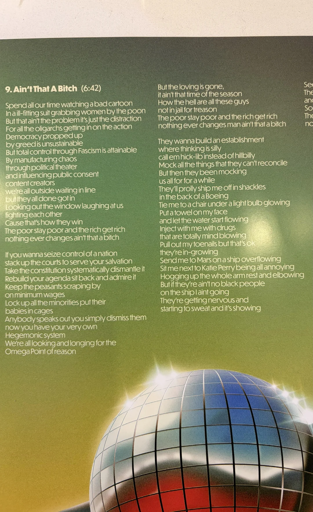 damn...... hopefully it's not a political album. I just want to listen to music, not a message.pjl44 said:Maaaaaaan come on with these Born Again Political Junky lyrics. We'll always have the Why Not tour.