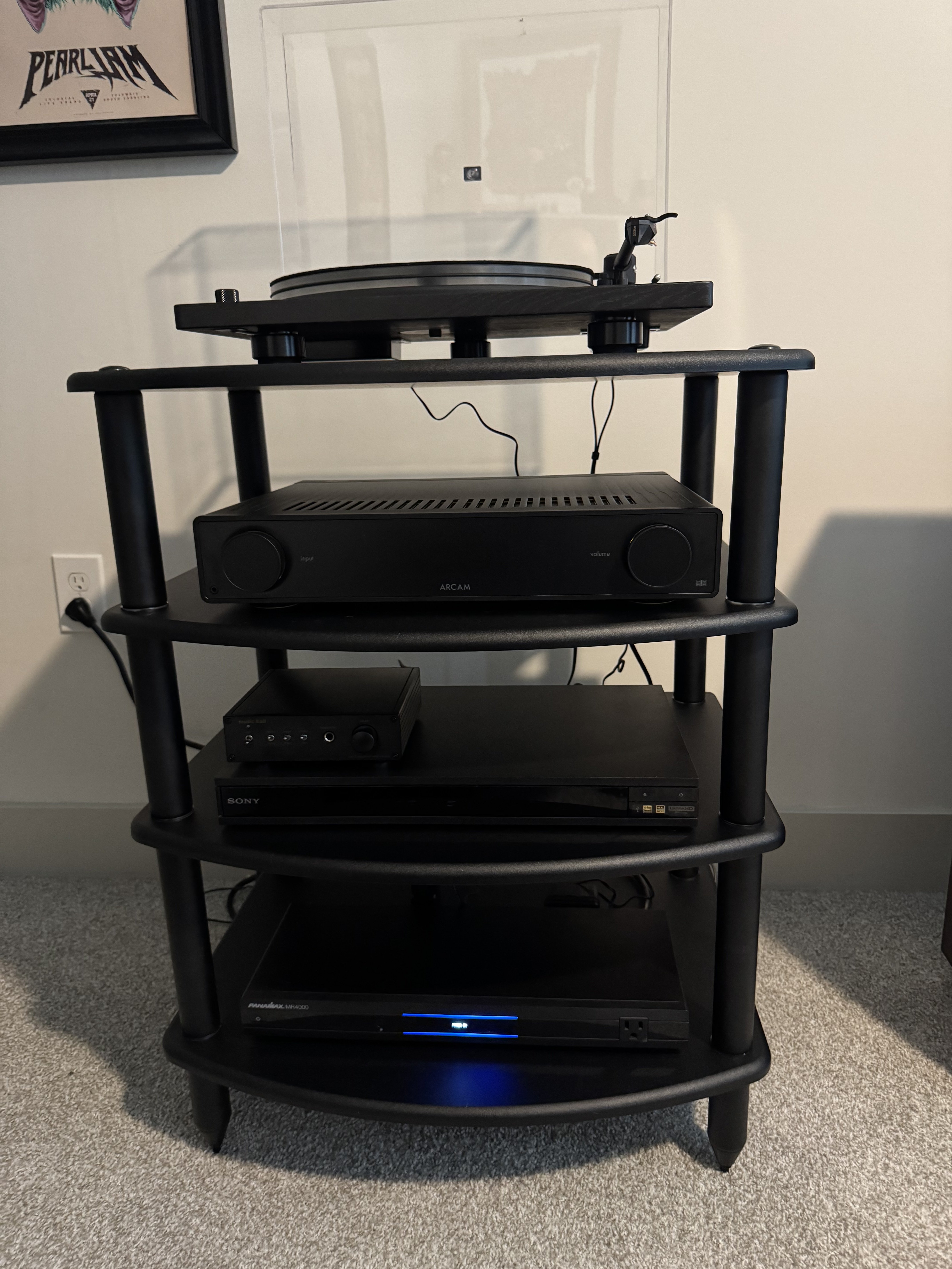 Getting ready to hook all of this up. U-turn orbit theory tt, music hall pa2.2 phono preamp, Arcam A25 integrated Amp, a Sony 4k blu ray player for optical audio disc playback and power conditioner. Speakers are vintage cerwin vega d4 modelPost edited by pjpjpaul onVirginia Beach 2000