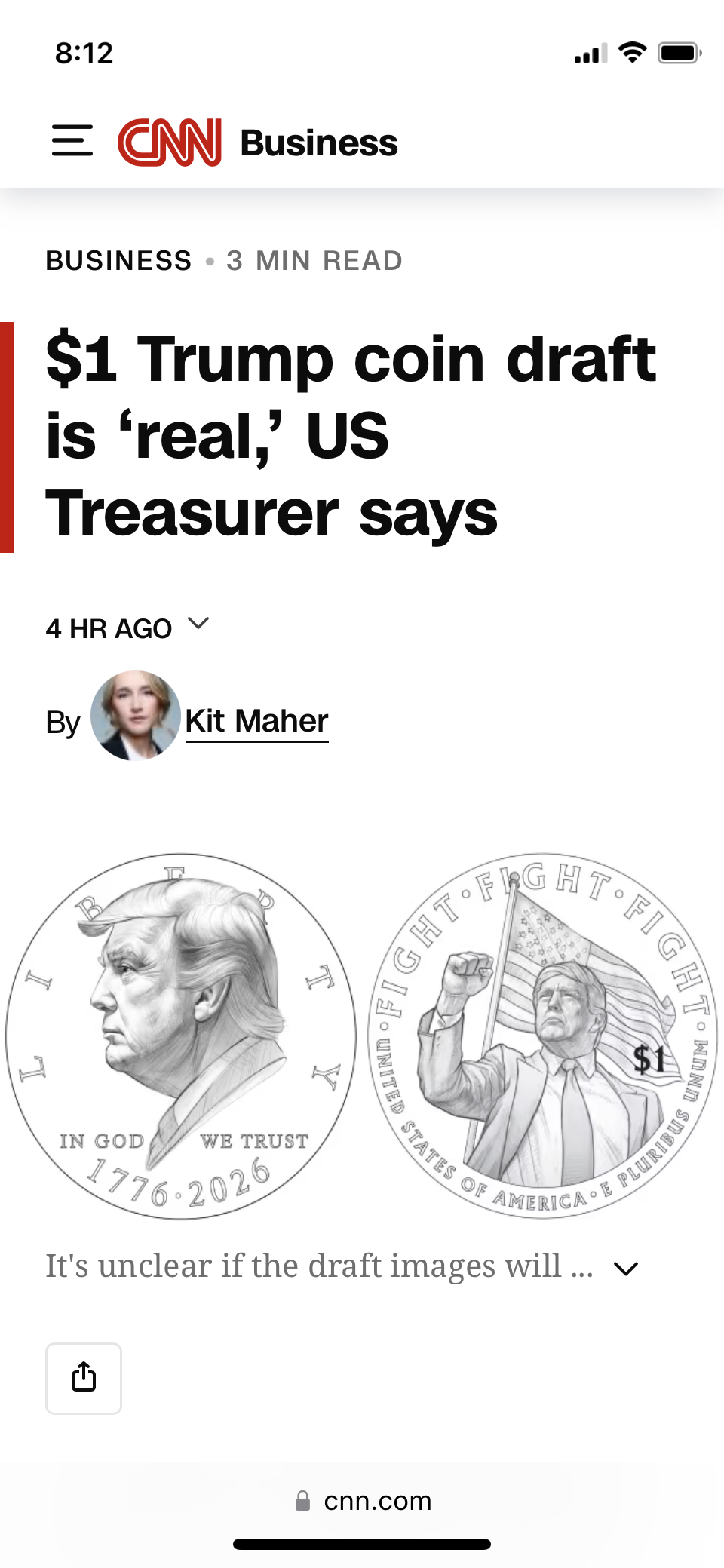 This fucking guy.$1 Trump coin draft is ‘real,’ US Treasurer says