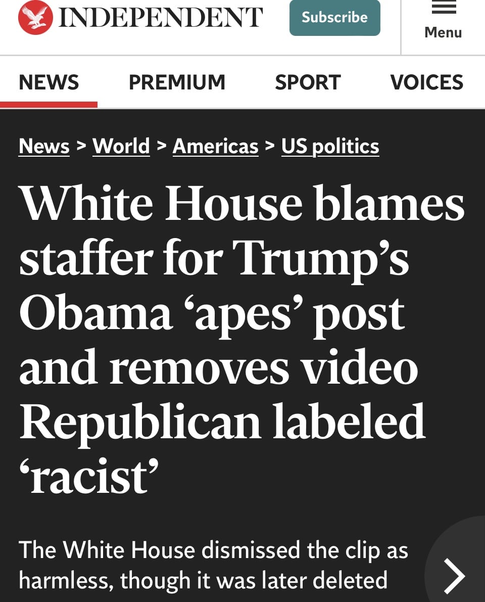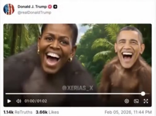The Ape post looks like the next major step in direction of a new president / government - along with the Minneapolis killings management and the “real loser” Olympics comment.