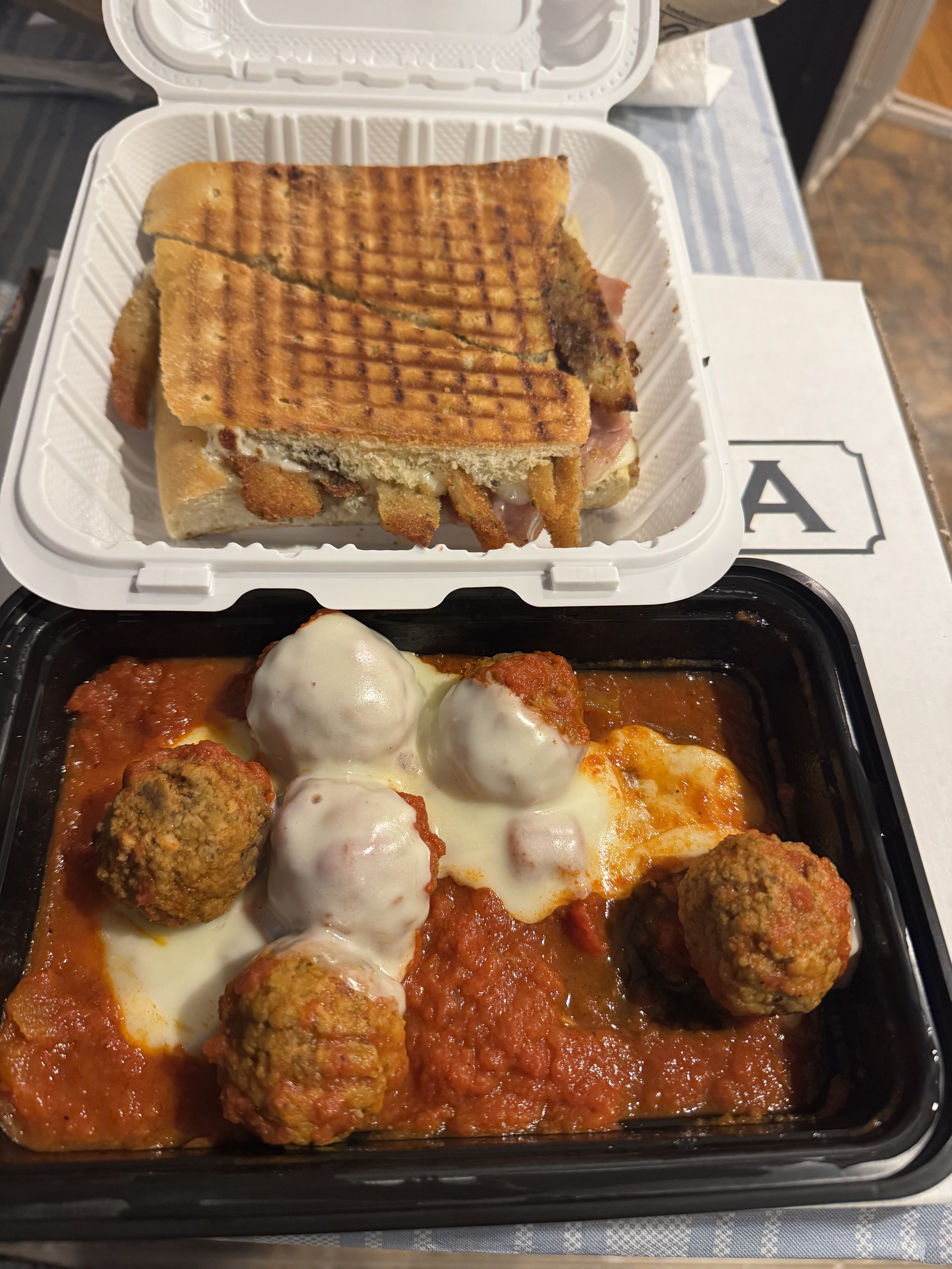 For MNF… had a few people stop by, shared a chicken cutlet w/prosciutto panini / amazing meatballs and a nice wood fire white pie with olive oil… added aged balsamic for the win