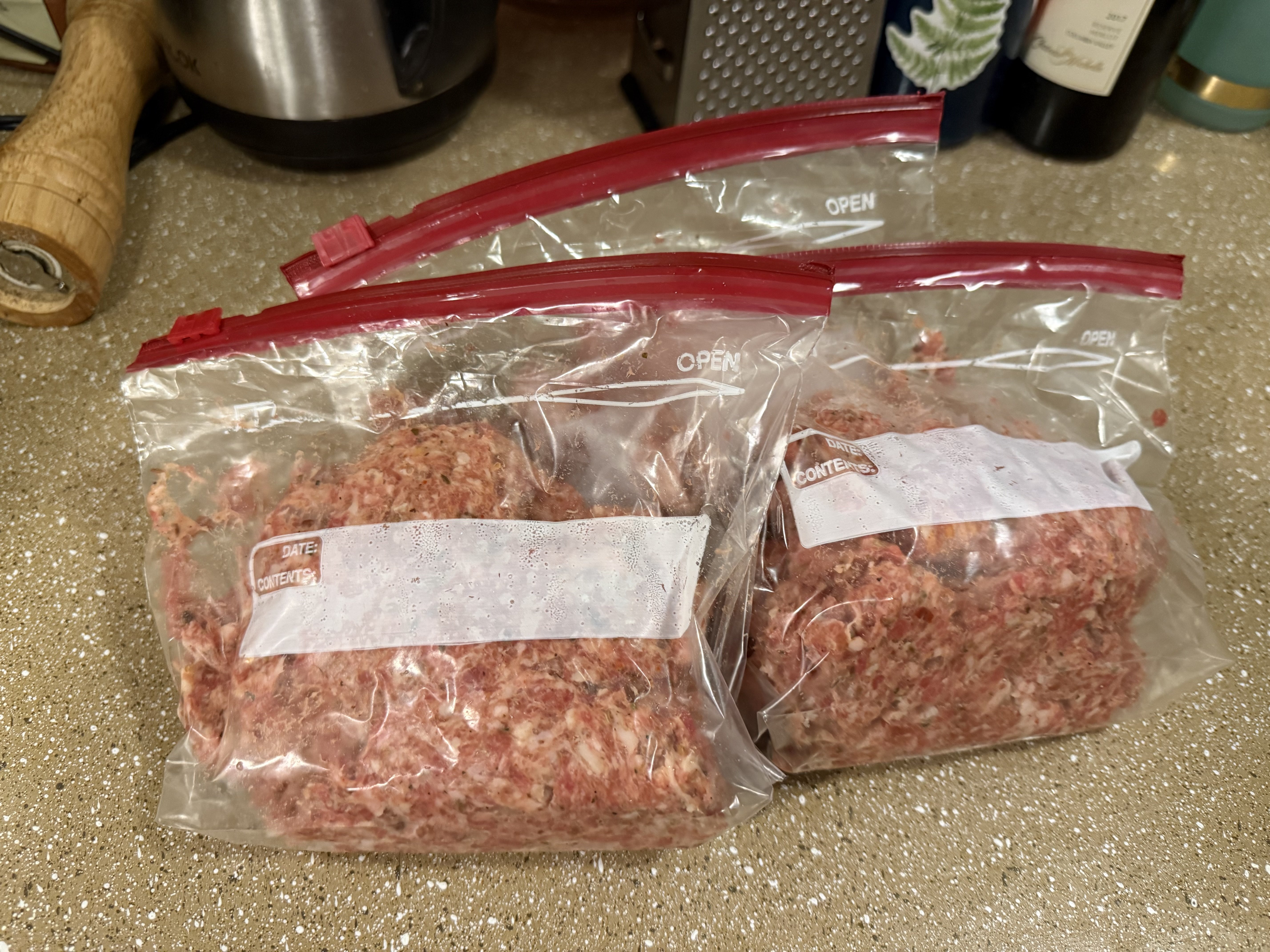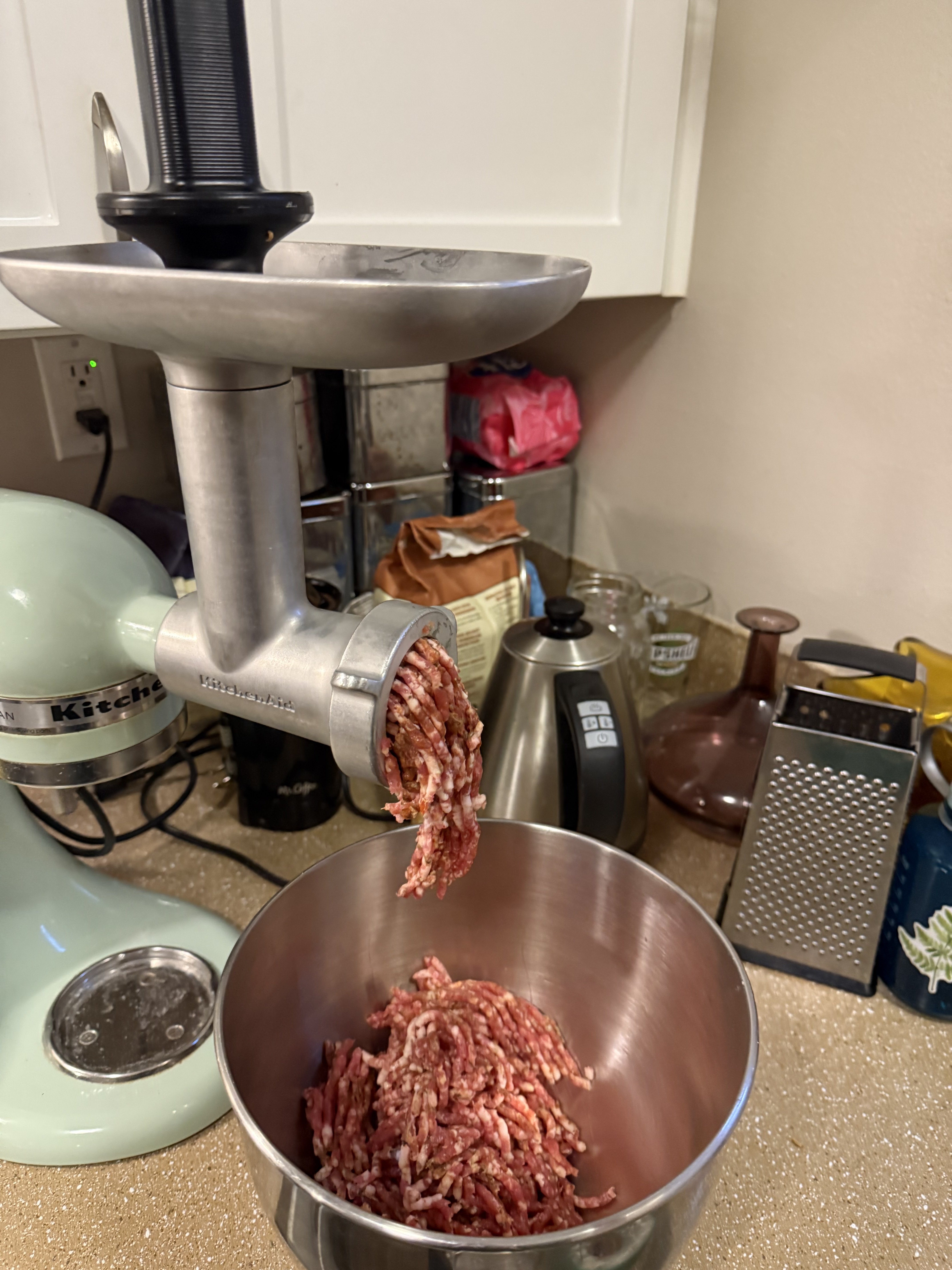 Today I turned the pork that I seasoned yesterday into ground sausage. Tomorrow it’s gonna go on some pizza. The rest is going to the freezer for future Italian dishes.