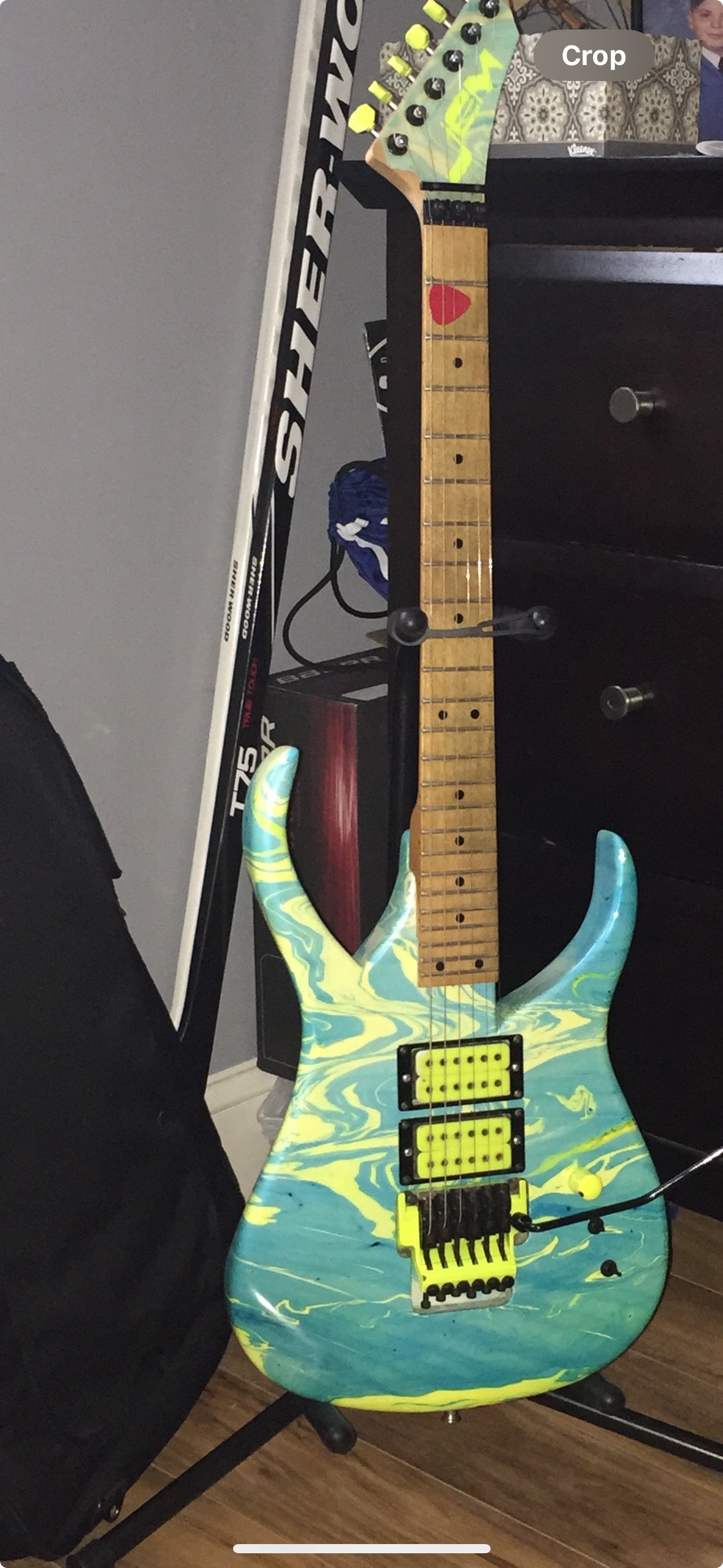 tempo_n_groove said:Not mine but one of the kids that works for me shows me this picture. His dad gave it to him. Bought it off the guy himself.This is a mid 80’s JEM guitar made by Joe Despagni here on Long Island.This was the prerequisite to the monkey grip and deal with Ibanez.It’s funny that this kid has a 20k guitar that he jams on.Pretty cool piece of history.