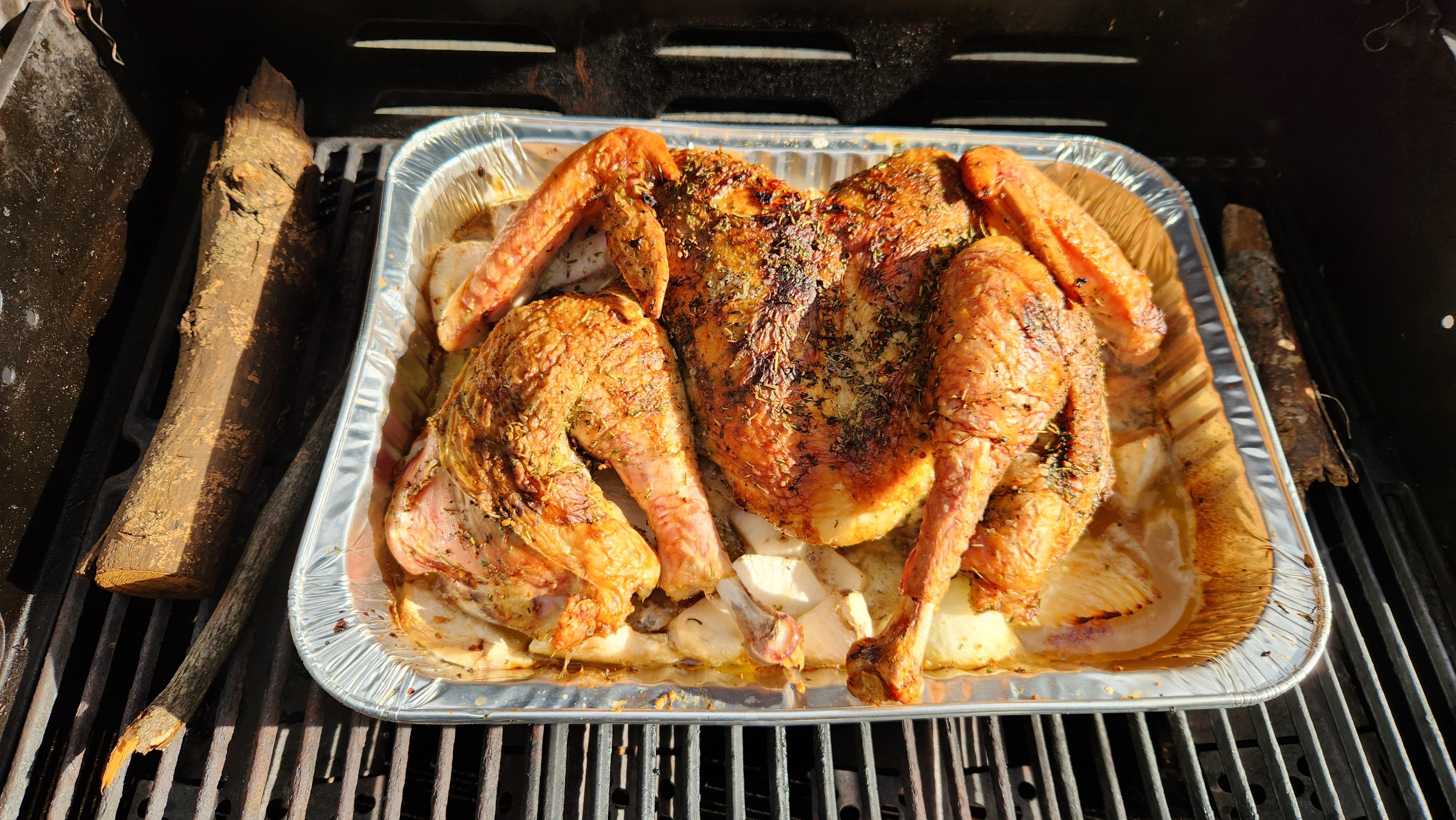 I did add butter and about 1/2 bottle of pint g. It wasn't dry. Open fire...maybe to finish it off. Or a really controlled low burner. Cooked pretty fast. Maybe 3 hrs. Or a little less.tempo_n_groove said:0 -