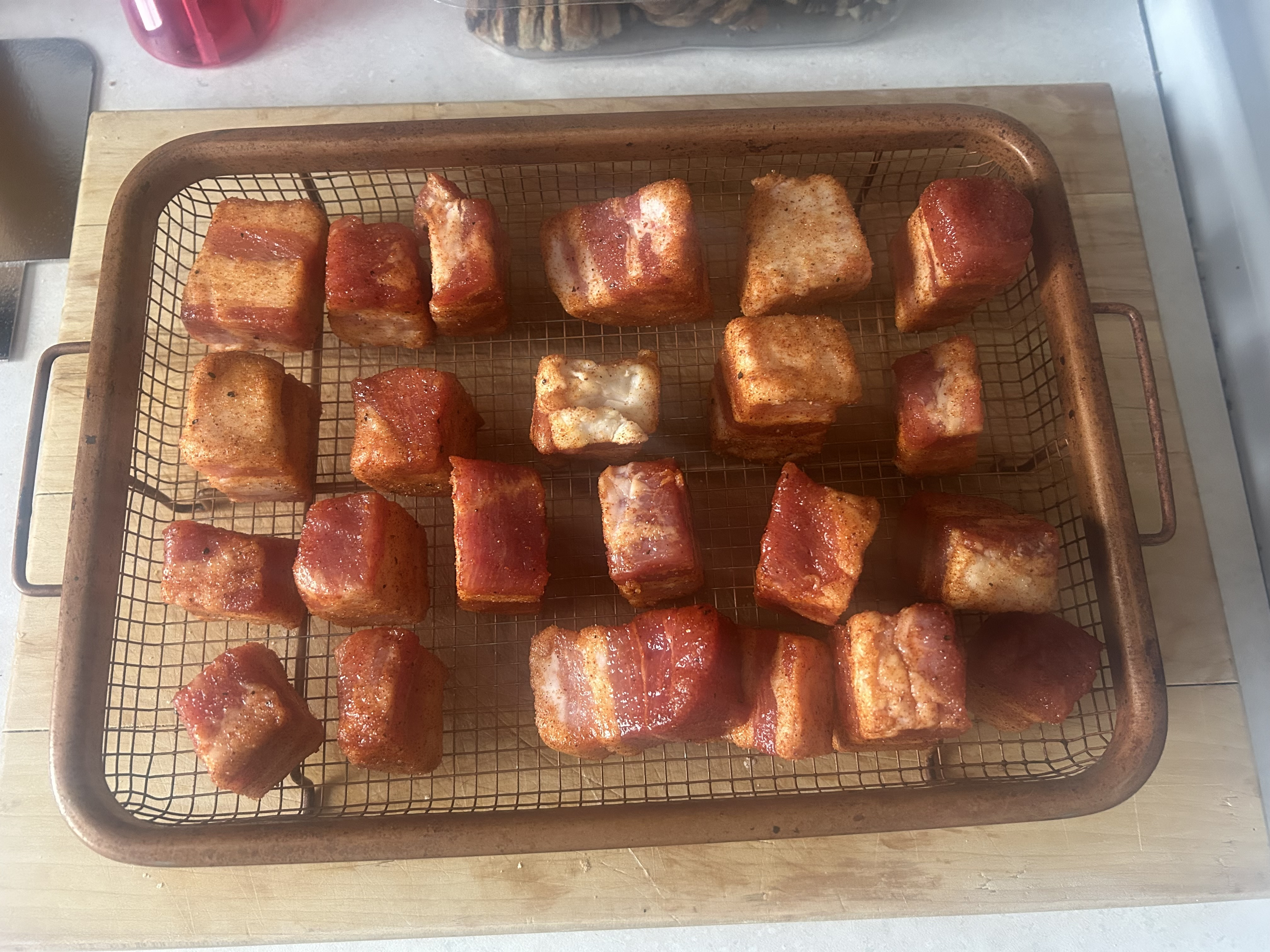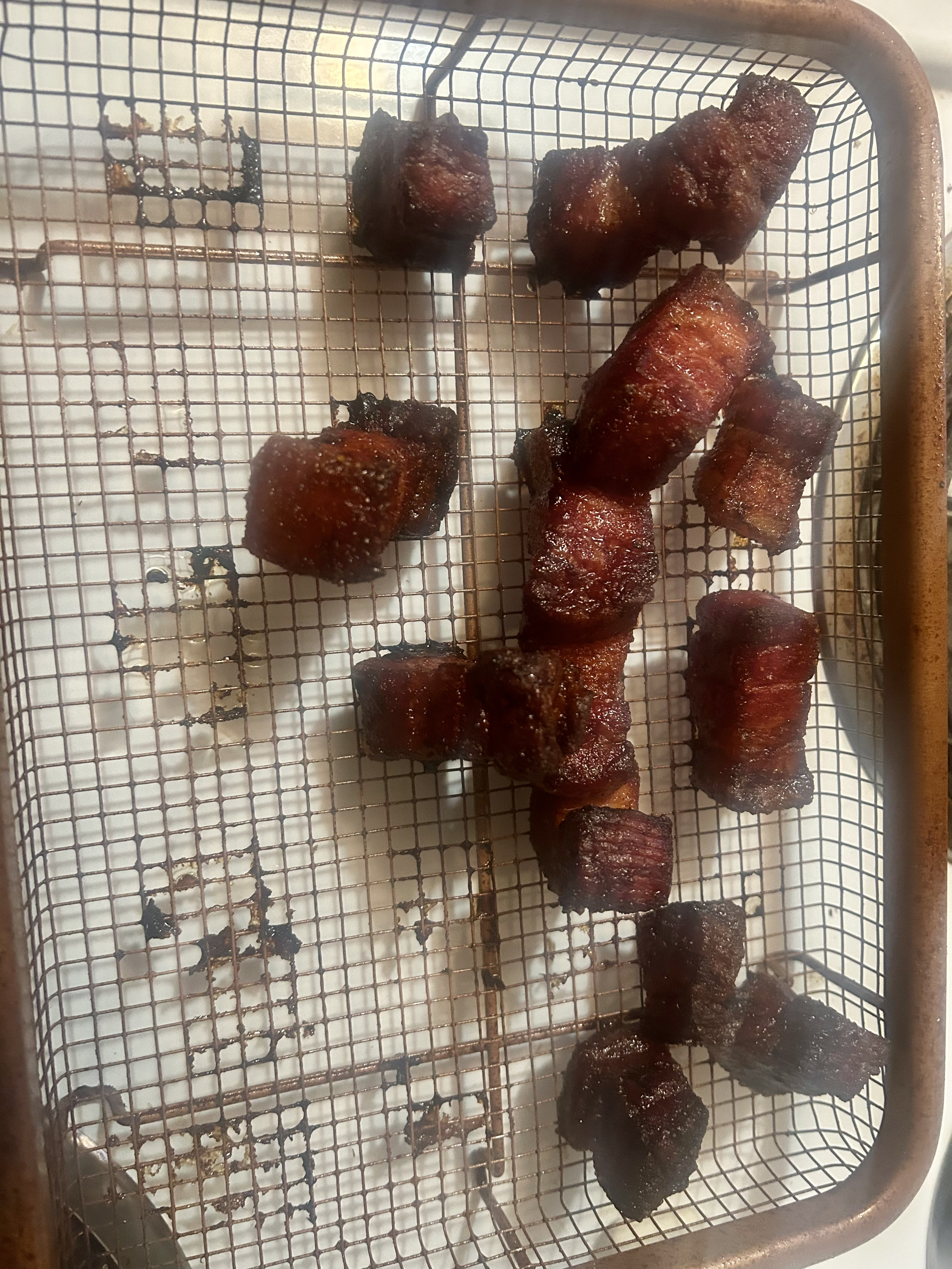 Smoked some burnt ends this afternoon in the e snow storm. Made for an appetizer, this meat candy is so delicious I could eat it all, may not be the best thing for ya, bit dammm!