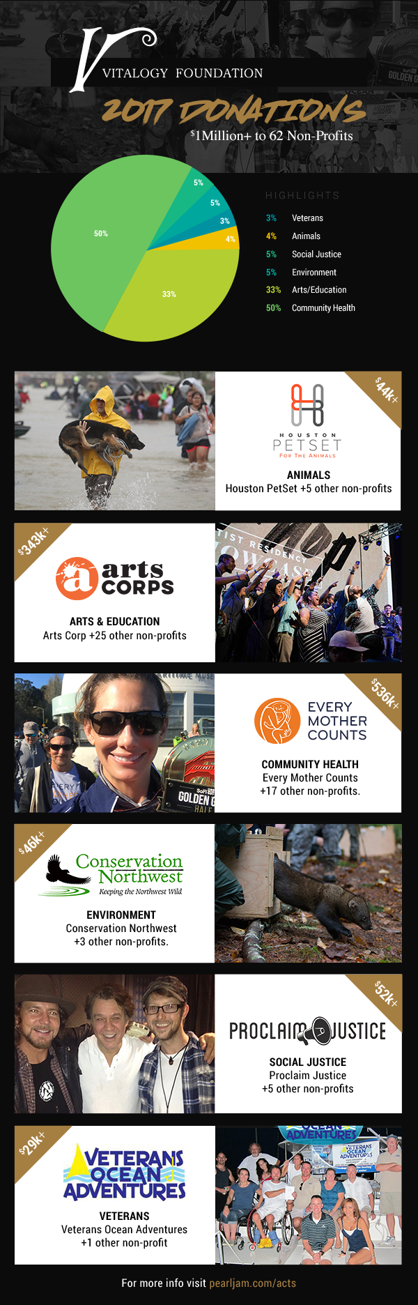 Donations are made to organizations handpicked by the band members. Because of your contributions as a fan, Pearl Jam is able to support these important causes - we thank you!
