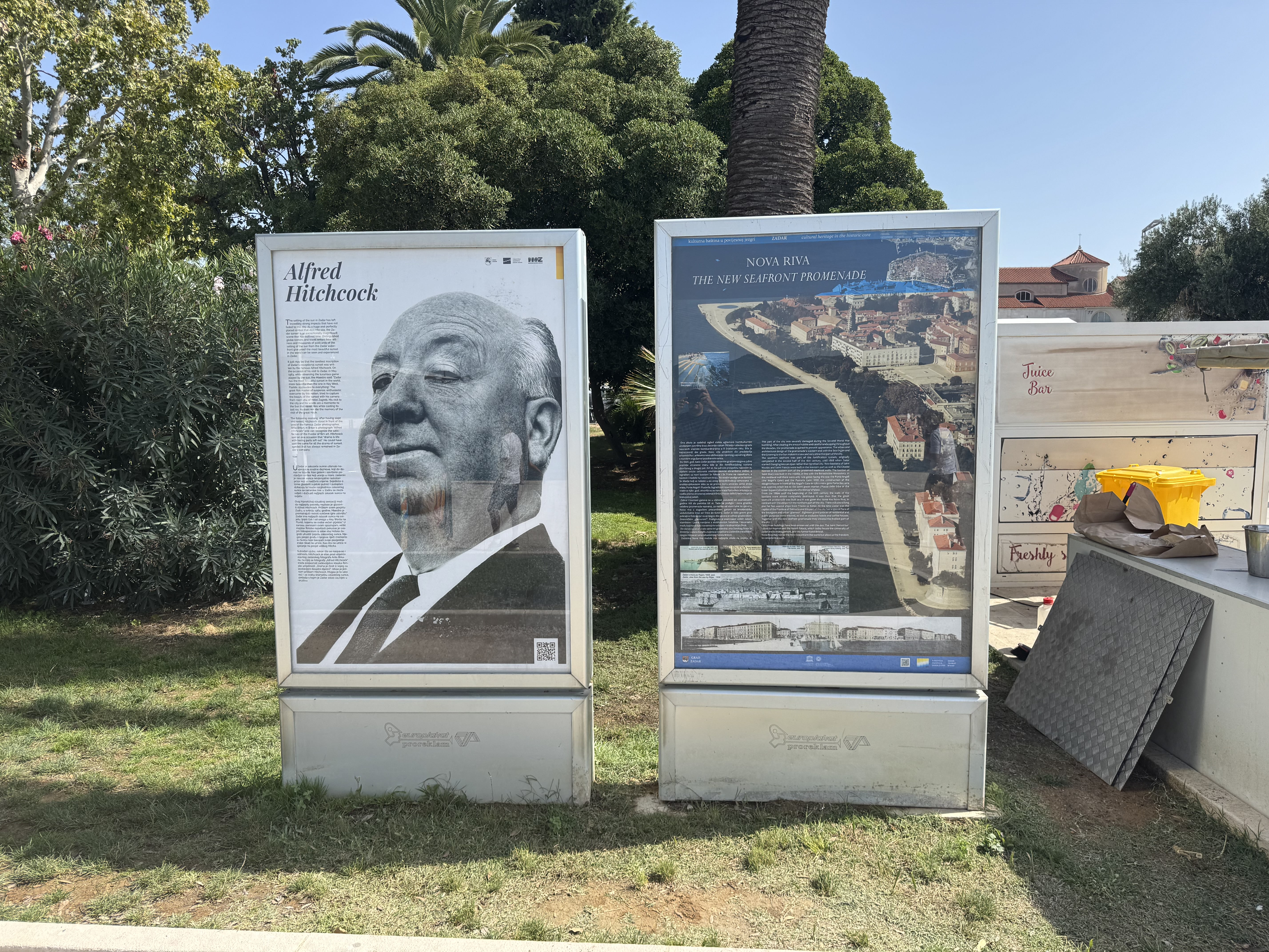 if you zoom you can read about Hitchcock comments on sunsets here.. the old city has Hitchcock movie nights in the summer… he’s well revered here