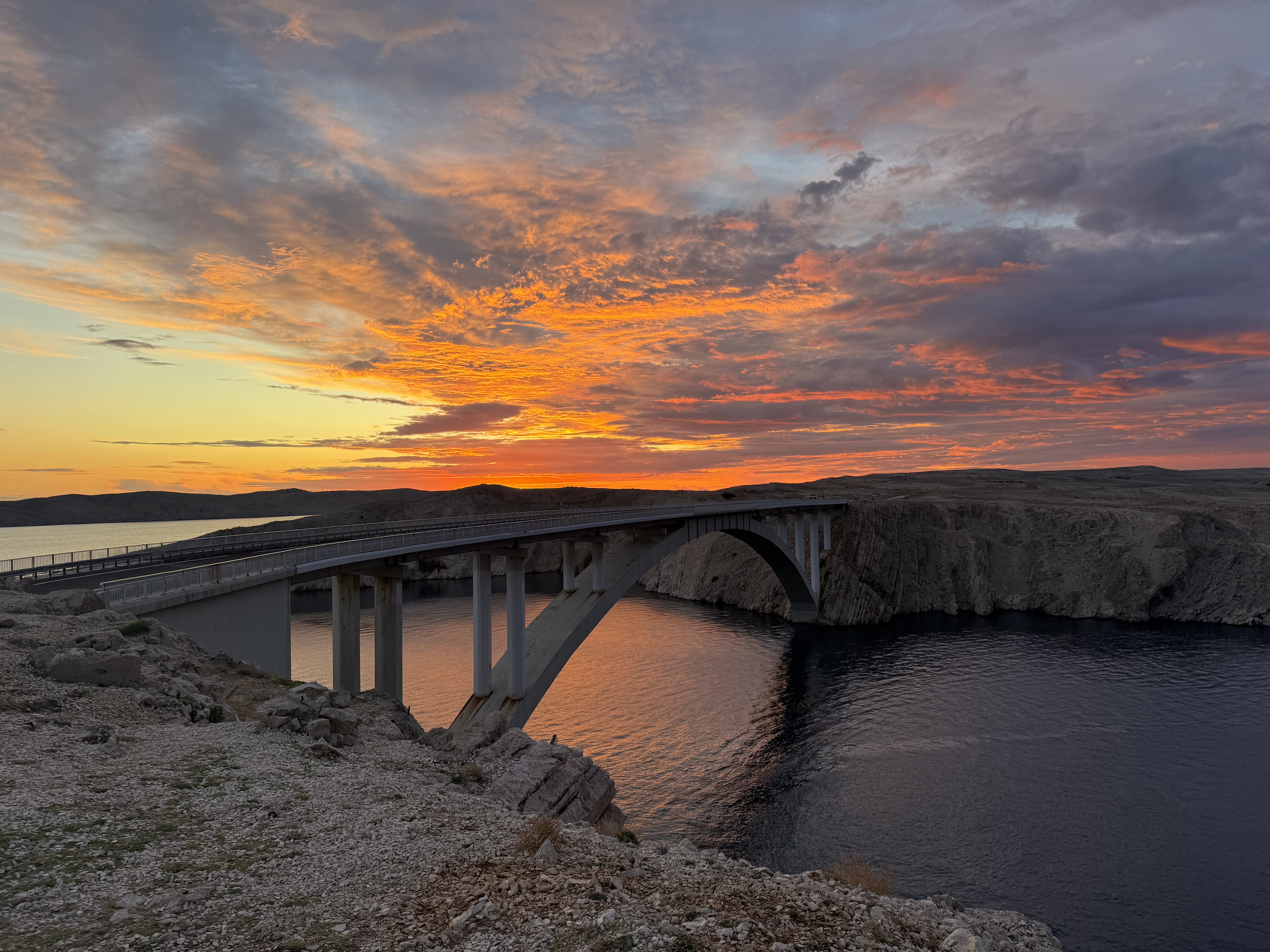 My top of the page ones were from Santorini Beach in Zadar, Croatia… bridge was a town between Zadar and Zrće Beach… had a tiny little beer stand/ food stand on a bluff right around sunset that I had to stop with my friend… caught it at right time