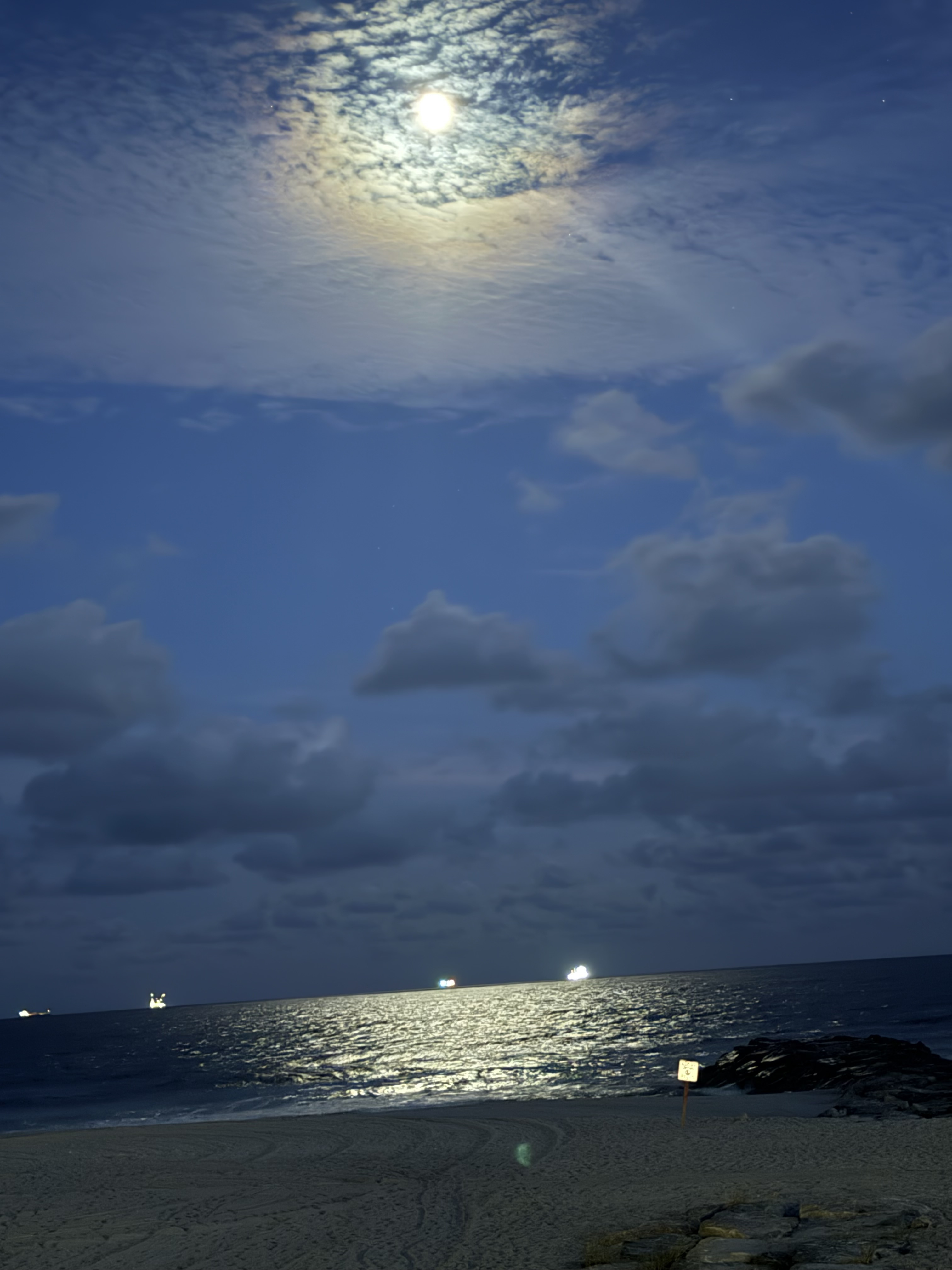 Sunset kayak paddle in the inlet and a full moon shot on the beach.0