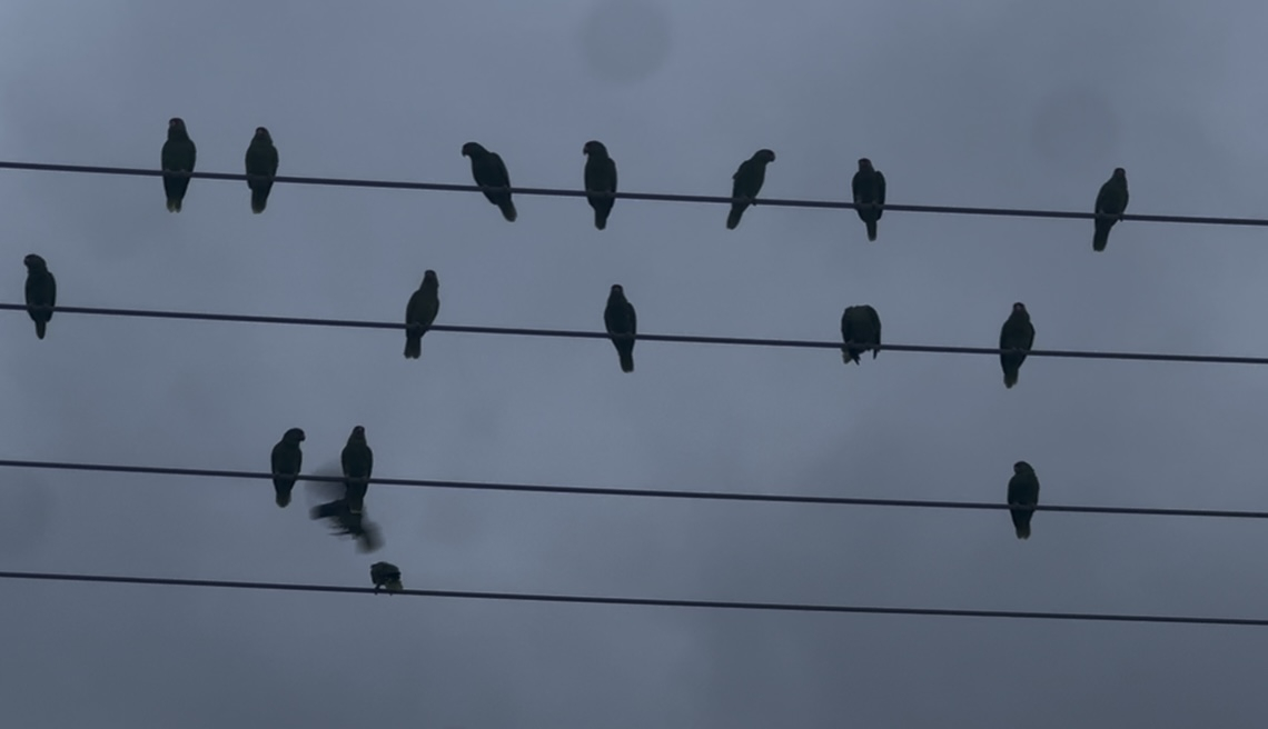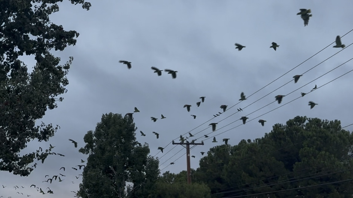 I saw this pandemonium of wild parrots by my house yesterday and stopped and took some pics and video. I think there was close to 200 of them squawking and making a racket. And yes, a flock of parrots is called a pandemonium. The more you know…