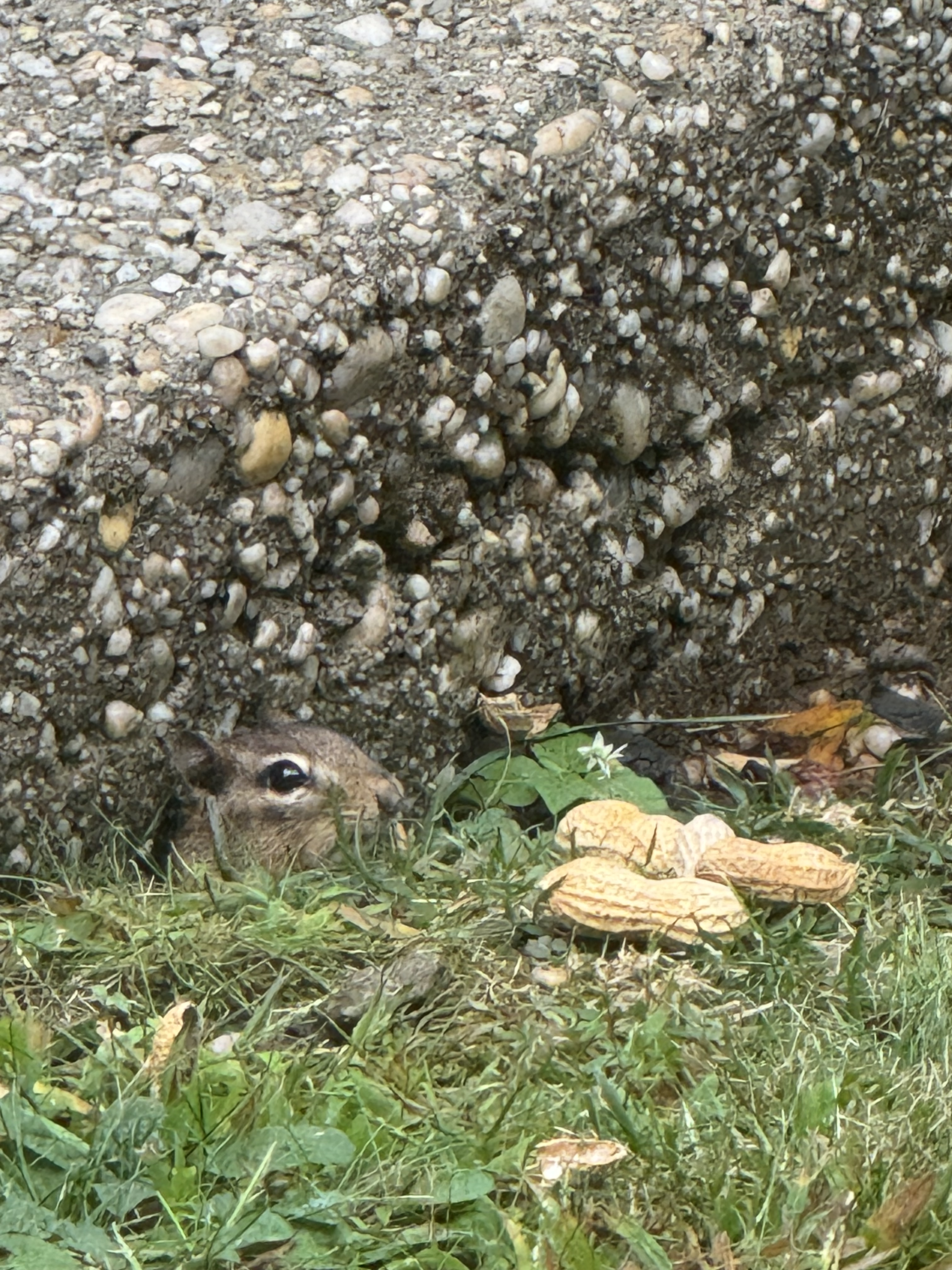 Feeding the chipmunk who made a home under my sidewalk … he’s smart lil guy, I wanna hand feed him eventually