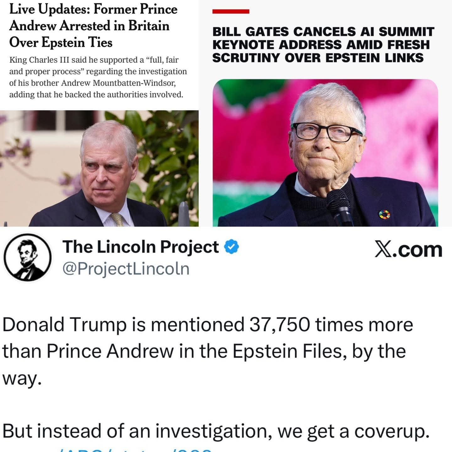 On Air Force One as Trump traveled to Georgia this afternoon for a speech on the economy, Peter Doocy of the Fox News Channel asked Trump about the arrest of Mountbatten-Windsor. “Do you think people in this country at some point, associates of Jeffrey Epstein, will wind up in handcuffs, too?”