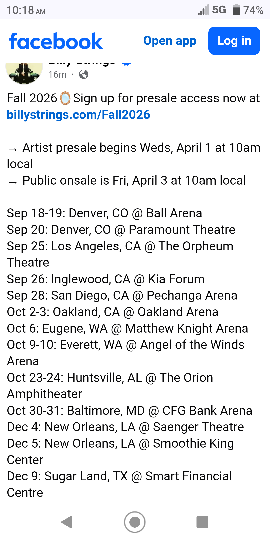 That is correct. That's the way to do it. If you wait until the regular on sale date, good luck! They sell out quick. And they're not overpriced as most artists are. He's a generational talent, not to be missed. I'm going to Portland, ME and already booked a hotel for Baltimore.GB281198 said:I remember getting a presale code but not sure if it was from him or the venue. I don't think he has a fanclub