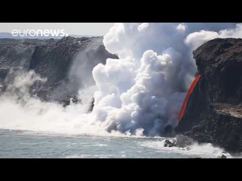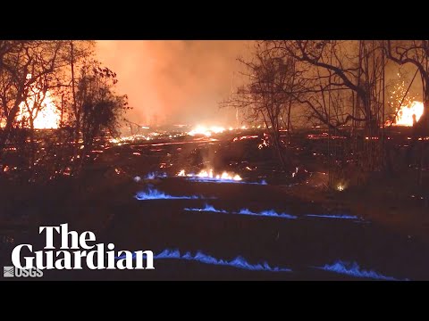 Emissions that come out of a volcanic blast, like the one in Hawaii a year and a half ago, lasted from May till September 5 months of all kinds of gases, and chemicals spewing into the sky, and filling up the ocean, reshaping the edge of that Island with super hot lava producing poisonous Steam.  The blue around the edges is methane gas from all the trees burning up Underneath It All.