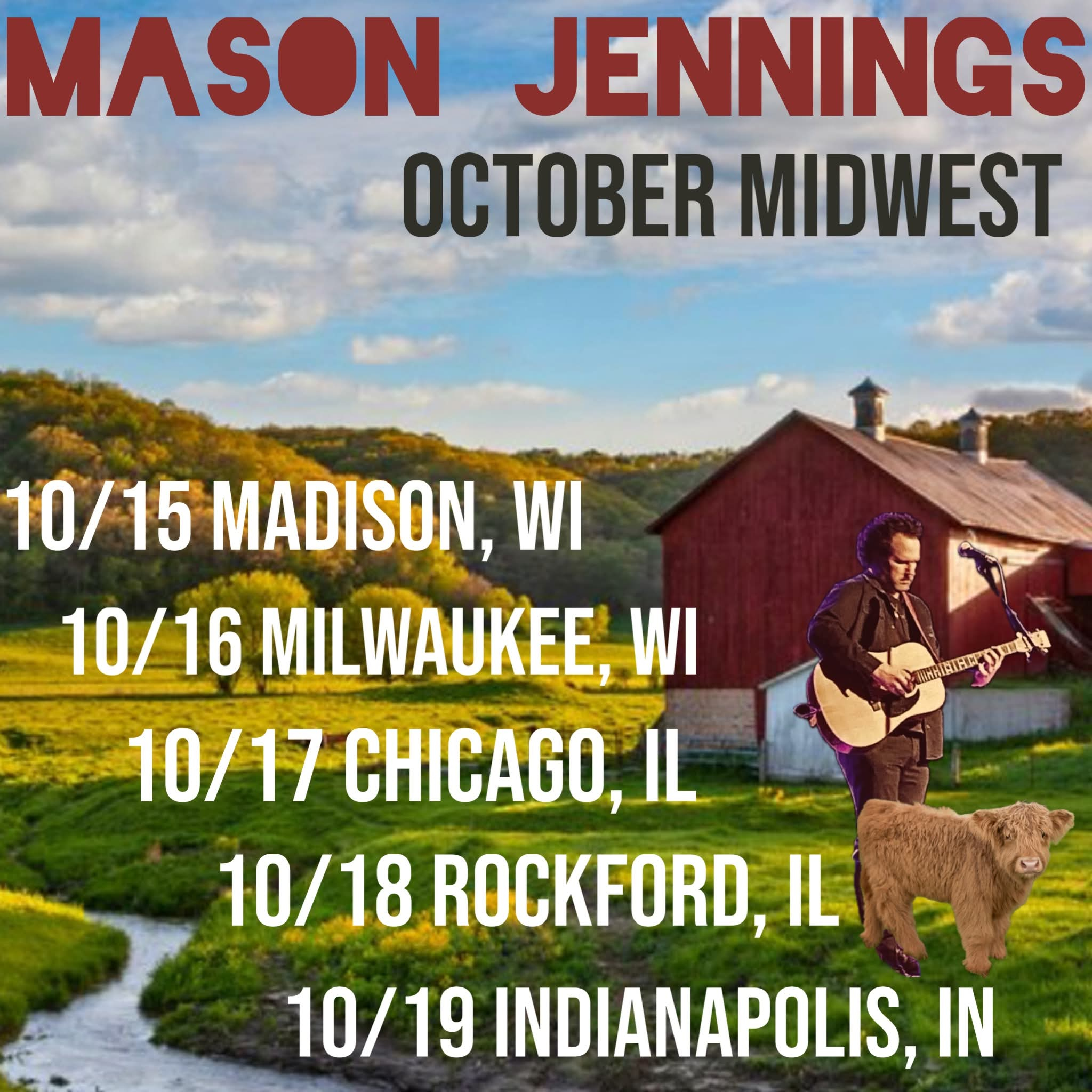 https://www.facebook.com/share/1VbnihrJoU/Just announced: October Midwest shows-10/15 Madison, WI at The Bur Oak-10/16 Milwaukee, WI at Shank Hall-10/17 Chicago, IL at The Old Town School Of Folk Music-10/18 Rockford, IL at The Music Box10/19 Indianapolis, IN at HiFiTickets on sale today except Chicago on sale 8/1. Ticket info at MasonJennings.com.Hope to see you at the shows!