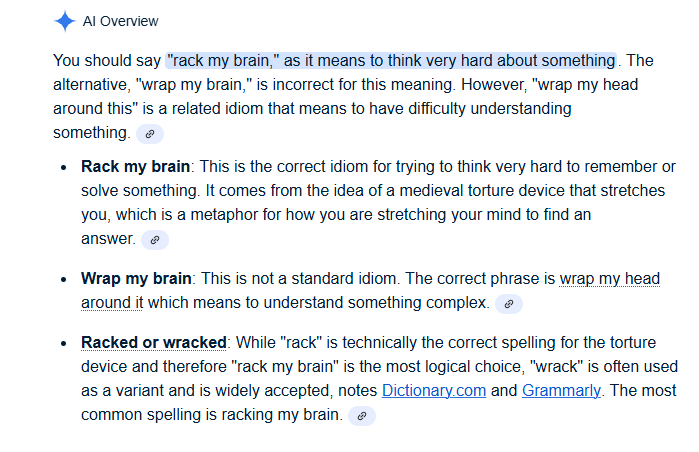 the saying is either wrap your head around something, or racking/wracking your brain. never heard wrapping your brain. and we're gen x.tempo_n_groove said: