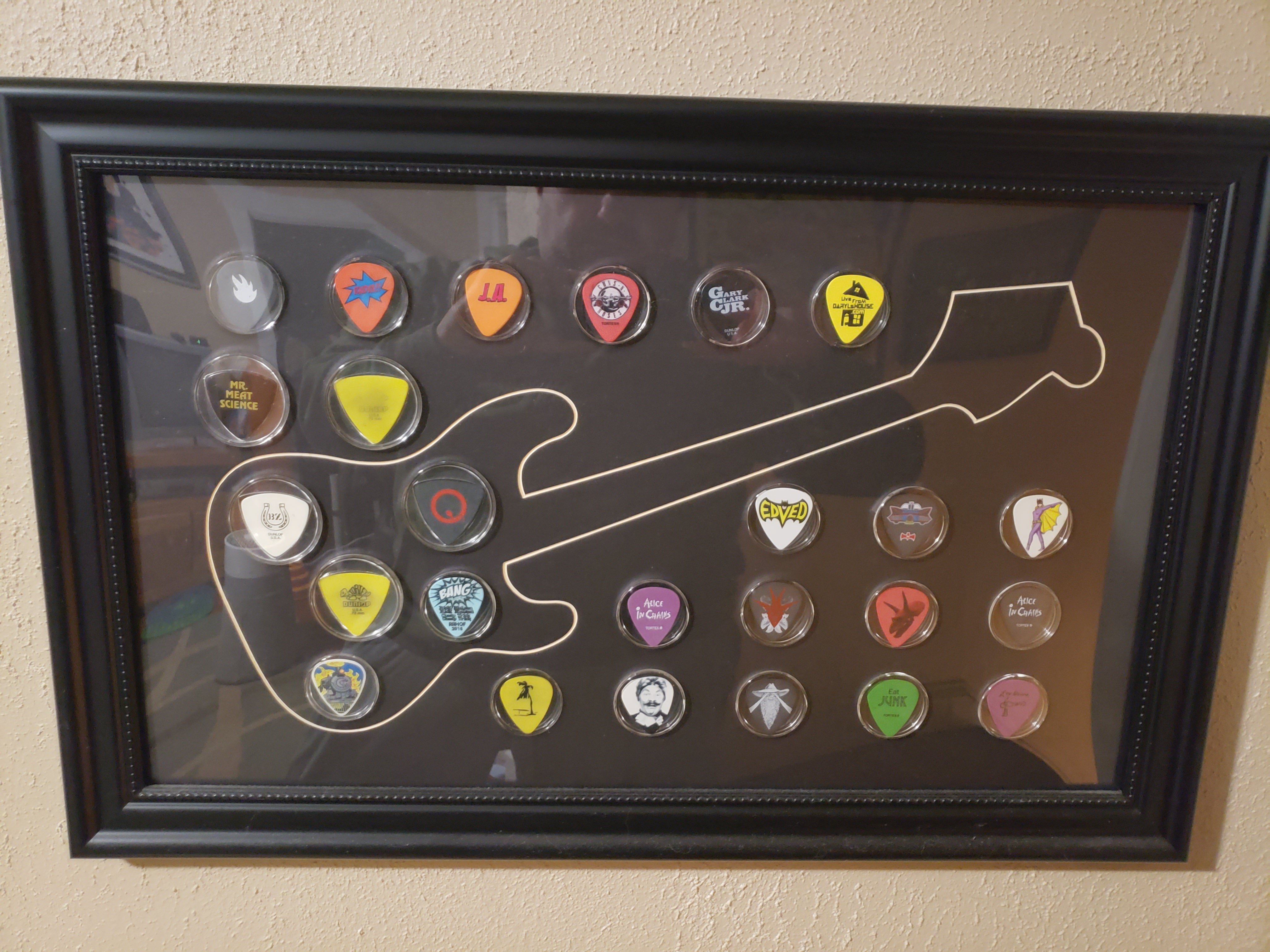 Most of them are from getting to the stage after with guitar techs and roadies tossing them out but my Mike McCready dog pick, I won the ticket lottery in Mansfield 2008, got 3rd row dead center, he tossed out a bunch, I got two of them, got my hand stepped on a few times 😂 then another Mike pick, not shown yet, having trouble loading it but has one of the Backspacer pictures on it, he gave it to me while giving me a high 5 during the 2011 Tres Mt show, didn't realize what he did right away, took me a minute, all time moment. The Ed picks I've gotten just by meeting him before/after shows or guitar techs, I've been very lucky.