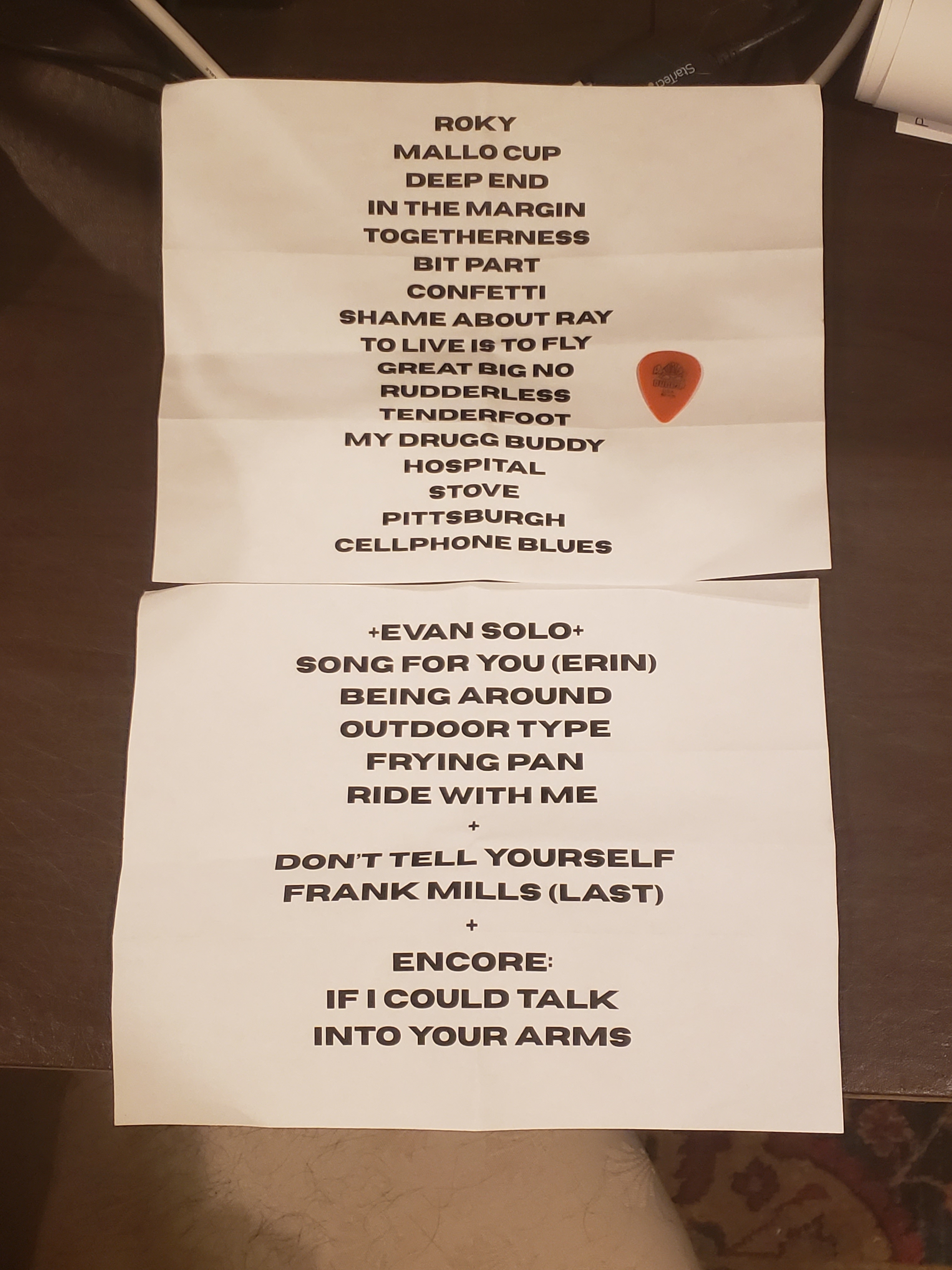 I had the setlist in my hand as well but a women caught it at the same time as me so being the gentleman that I am, I let her have it - I got the pick so it worked outLoujoe said: