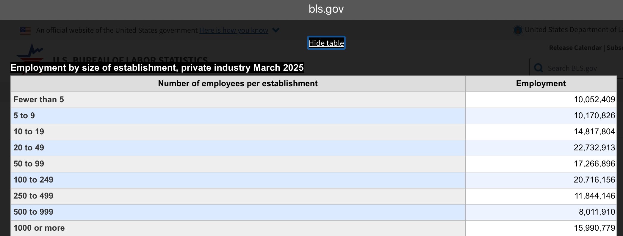 Less than 3% of US companies have more than 100 employees. How is your 90% stat some winning argument?