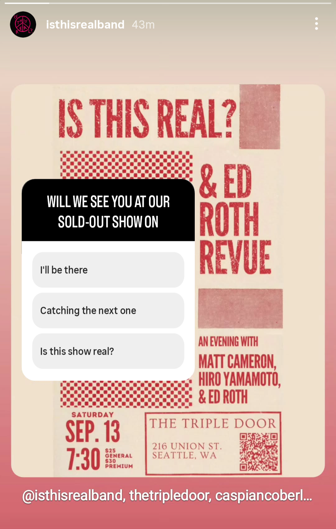 Is This Real? Wipers tribute band with Matt Cameron .. Sept 13th