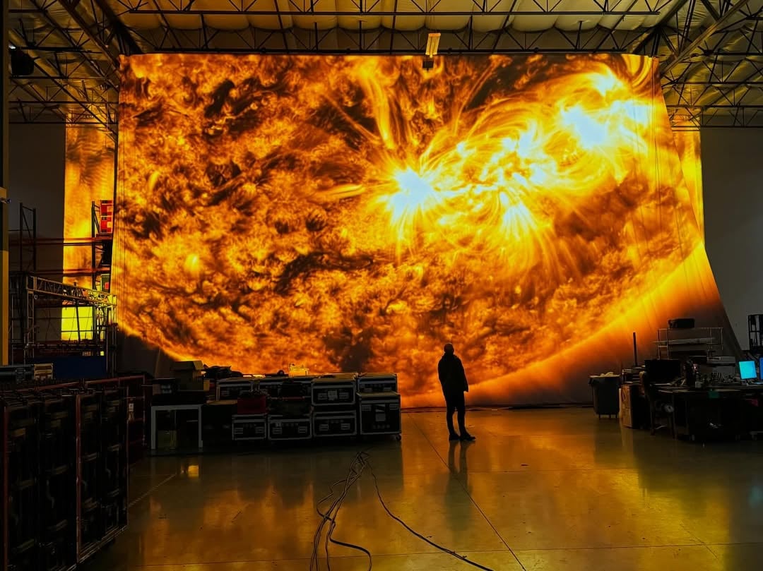 Two years ago today I was in Vegas late at night in a warehouse with @nimblist @imperialmonster @mcdonaldg @joybirdstudios @warmnfuzzy.tv @christopherhgrey running out first projection test for the @pearljam Dark Matter tour production. After two months of prepping and filming, I was eager to see some of our visuals on the actual screen material, with the actual projector, at the actual size it would be in arenas. It would be another month before we had the entire screen set up for production rehearsals, but thankfully @nimblist was able to set up this test with a portion of the screen. It was exhilarating to finally see the visuals we’d been working on at their intended scale, and a relief to discover that they translated extremely well to the projection surface. We left the quick one-night trip with a fresh wave of confidence and excitement that our experimental plan was working, and the show was going to be as beautiful as #PearlJam deserved for their first visual tour production in their 30+ year history.