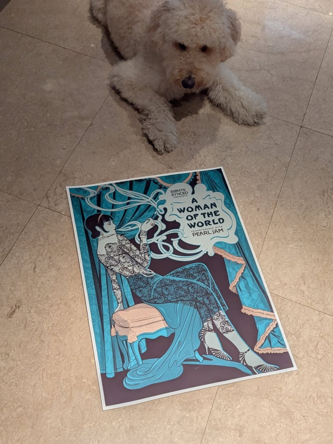 Poster by Shian Ng for the third film in the Silents Synced film series, pairing A Woman of the World with music by Pearl Jam. Directed by Mal St. Clair and starring Pola Negri.