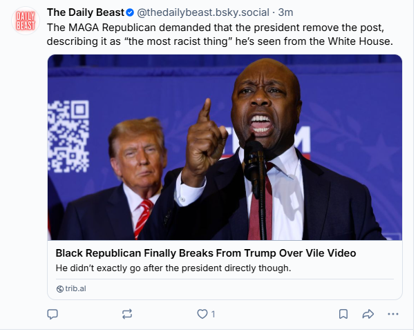 "the most racist thing he has seen from the white house" implies that tim scott has seen other racist things and let it all slide.Gern Blansten said: