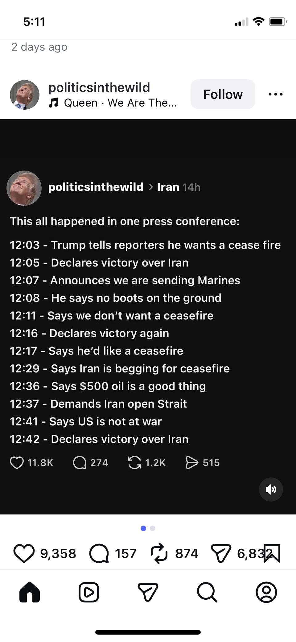 I'm wondering now if trump gave an order to bomb Iran's oil fields and the military refused. Something is really odd with the threats and immediate retreat.