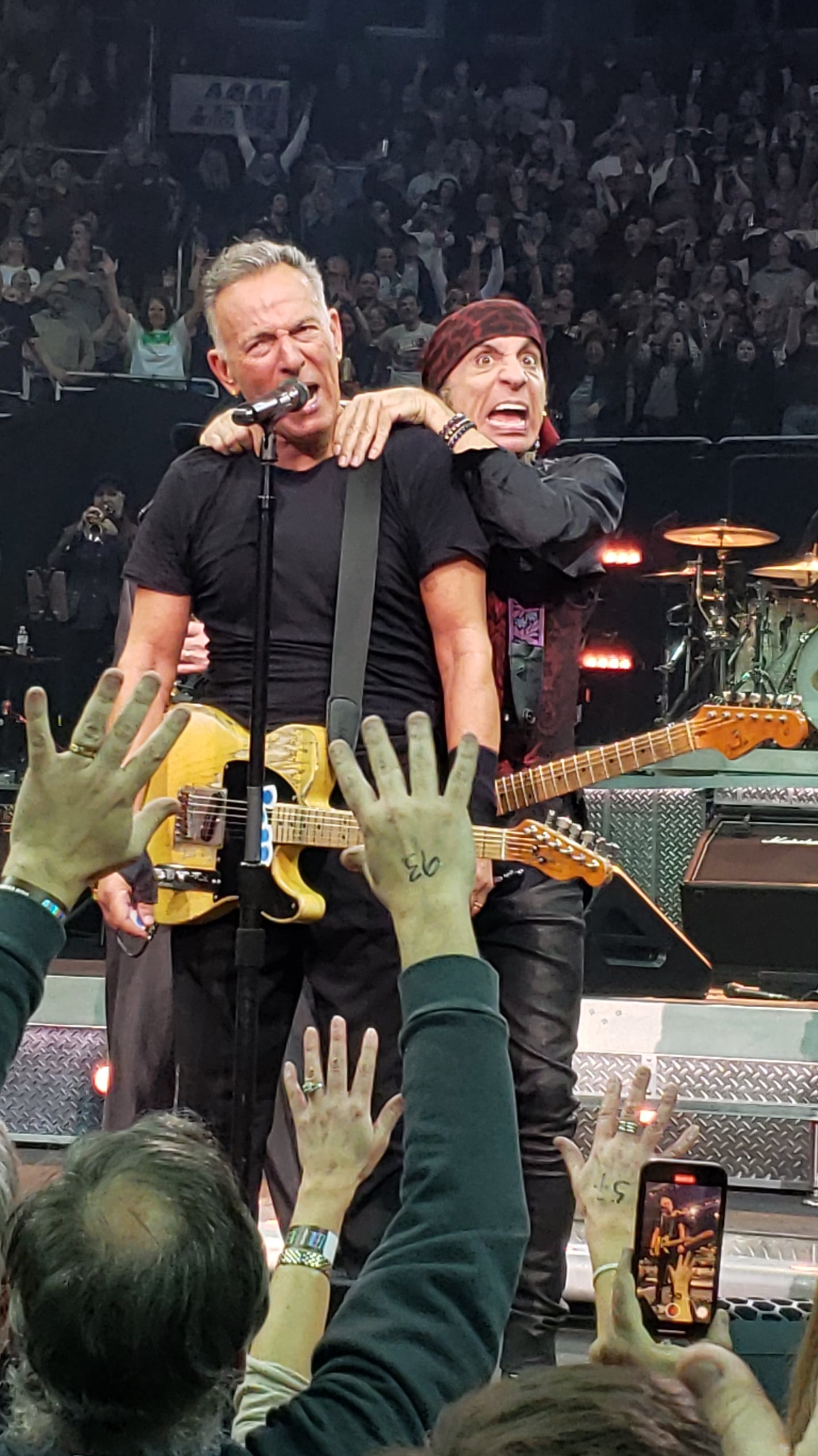 On my phone from those seats, I bought 2 5th-row center from Vivid Seats for $500 each, and had to go across the street to Hotel Pennsylvania and print the tickets, because MSG wasn't accepting e-tickets at the time. The first one didn't scan. The second one did, and my brother stayed inside, so we ended up being fine. Caught one of Matt's wristbands.