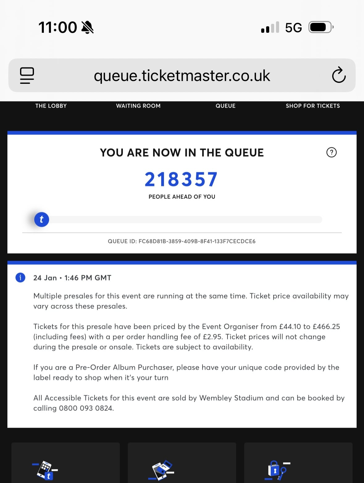 Wembley queue was insane as well. This was my queue position on Monday