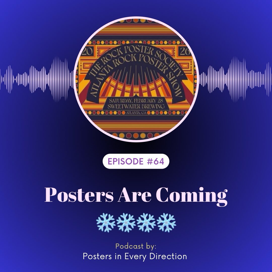 Episode 64: Posters Are Coming!!! Surprise and happy 2026 to you all. It’s been awhile since Mike and Erica sat down and got y’all caught up on what’s coming in 2026. First up, the podcast will be at @atl_rockpostershow on 2/28 and we can’t wait to see you and connect with incredible artists. Come visit the booth and grab a sticker from us and @bestofthetour (our other podcast!) and support your favorite artist! Thanks @trpsorg and @mattleunig for having us. Also, 2026 brings A LOT of traveling to new cities to see @goosetheband and @davematthewsband, and some new bands like @dogsinapileband … we hope to see you in the merch line and on the road!! #podcasts #postersineverydirection #merch #postercollector #giposters Art by @briansteely for ATL Rock Poster Show