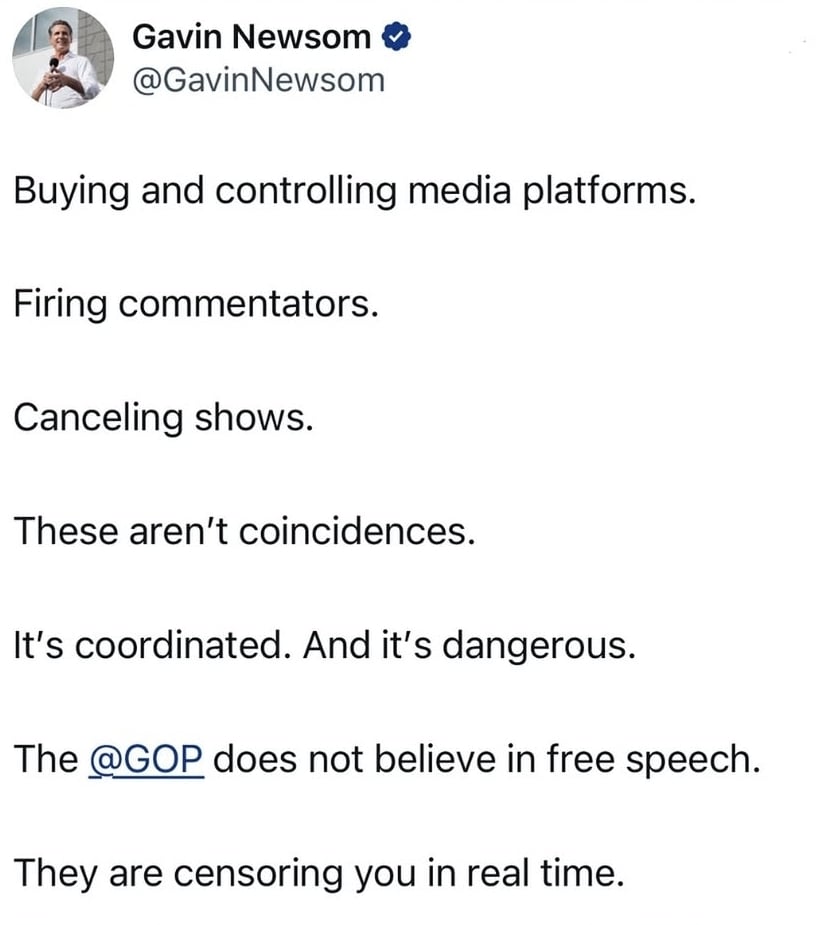 Being a long-time native of California, I can tell you this is not a perfect place, and certainly not the dazzling Hollywood glitz that it is reputed to be by some (it's a huge state with very diverse populations, climates, and bio-regions and L.A. is but one facet of the state), and it is a mere shadow of the beautiful place it was when I was born, but I must say, I feel extremely fortunate to live in one of the few states with a governor willing to stand up to fascism and authoritarian rule.  (Kudos to Illinois and their governor Pritzker for that as well!)