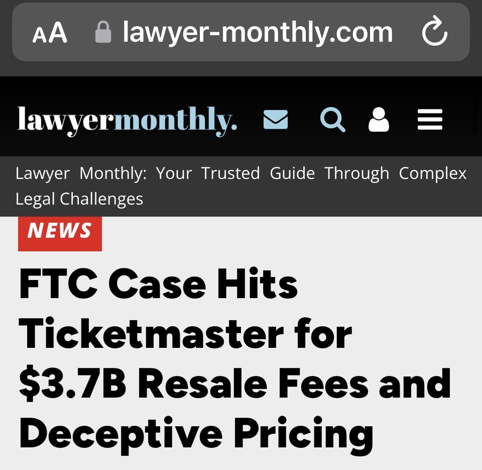 Awards for law firmsTicketmaster’s reputation as a controversial market leader has never been enough, by itself, to justify litigation. What distinguishes this action is the FTC’s detailed claim that systemic profit motives, rather than isolated failures, drove consumer harm.