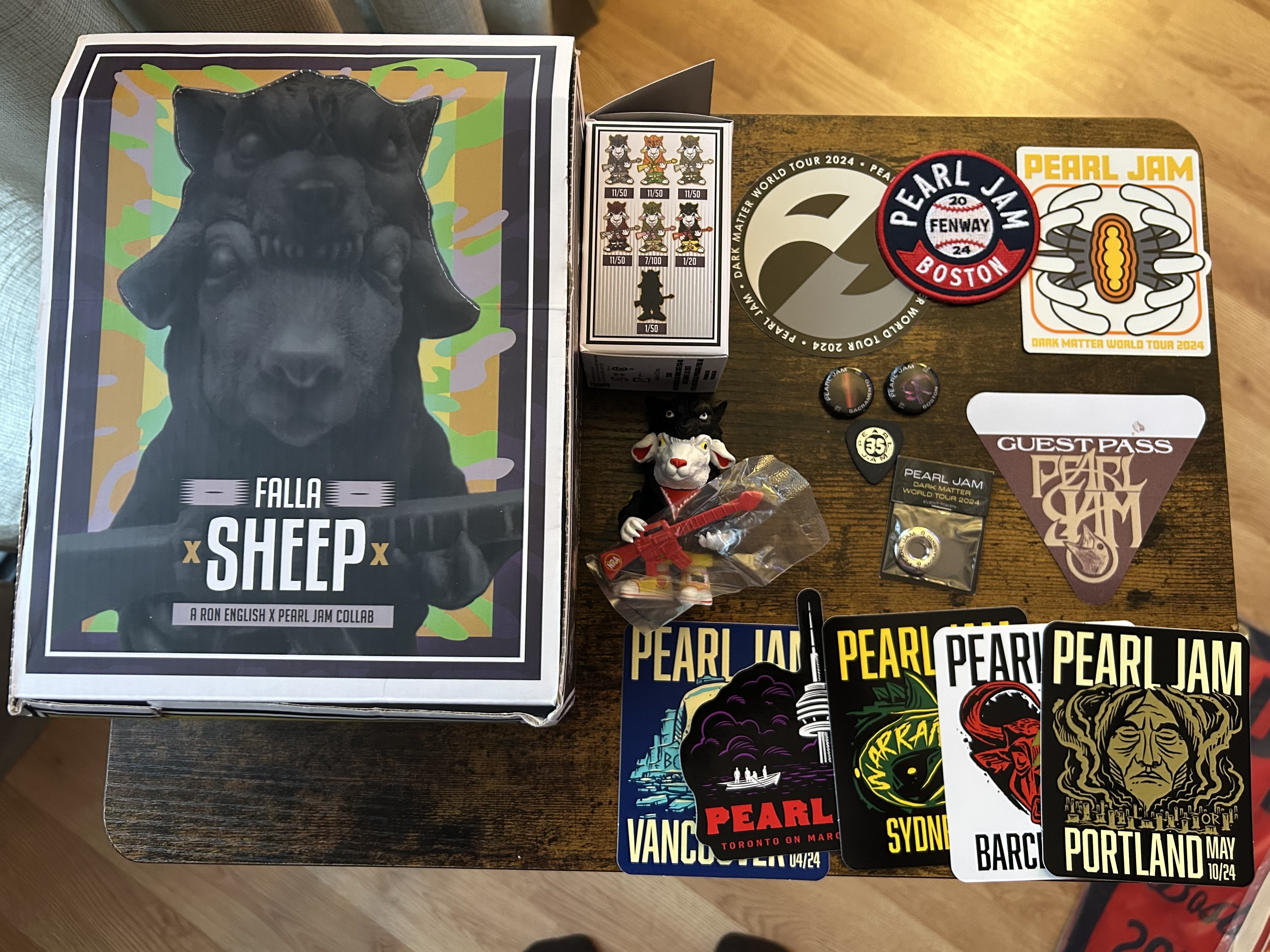 Mens medium arrived. Falla Sheep. Shirts are Indy and Strangest Tribe. Fenway banner. Pins are Boston and Sacramento and a Sacramento token. Boston key chain. Stickers are Portland, Barcelona, Sydney, Toronto, Vancouver. Boston shirt had a rip in the neck but I don’t wear medium so not broken up about it. If interested in anything let me know. Wouldn’t mind trading for a Wrigley banner or XL shirts.2014 Milwaukee / 2016 Fenway N1 / 2018 Wrigley N1 / 2022 Oakland N1 / 2023 St Paul N12024 Wrigley N2 / 2025 Nashville N10 -