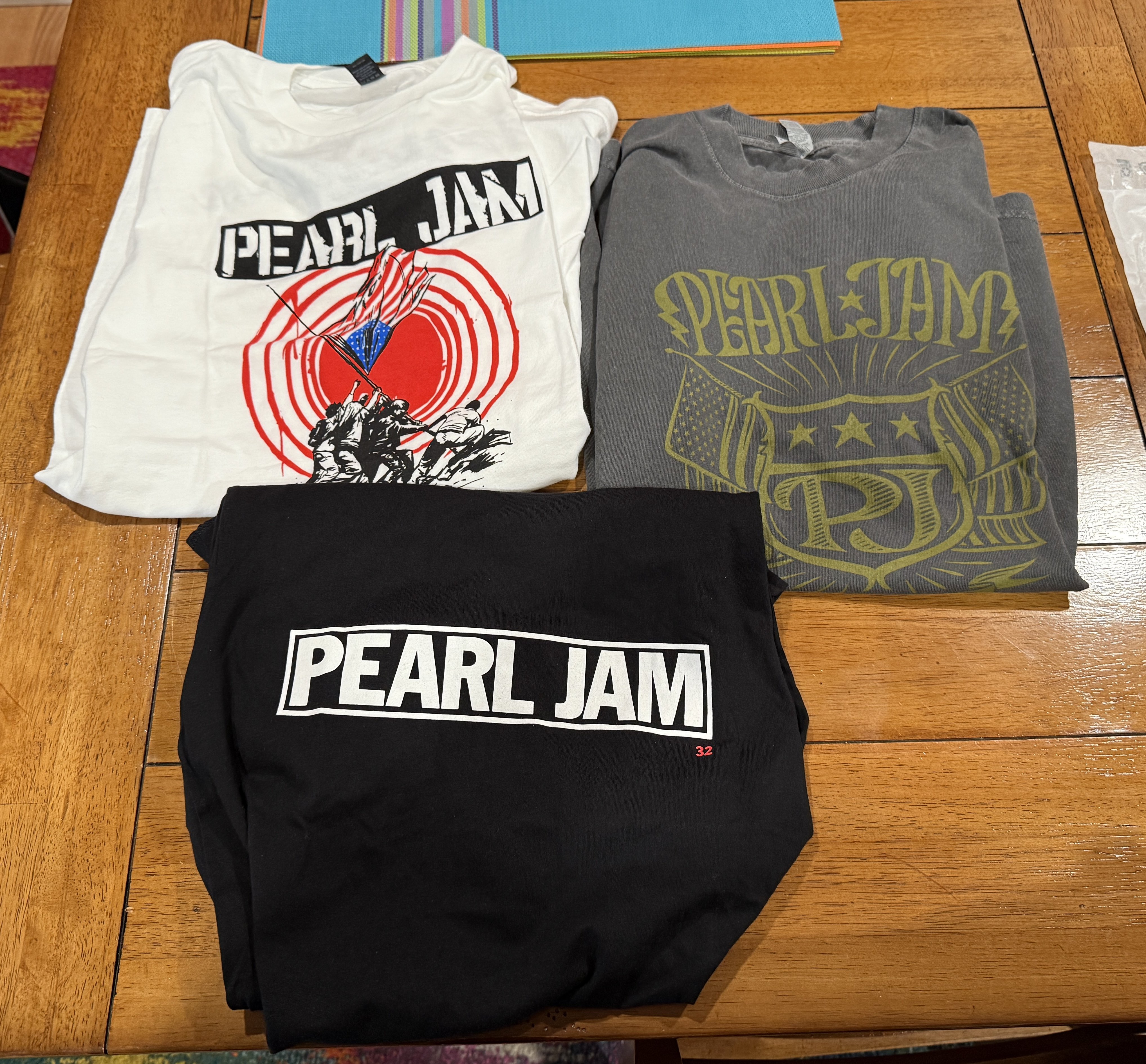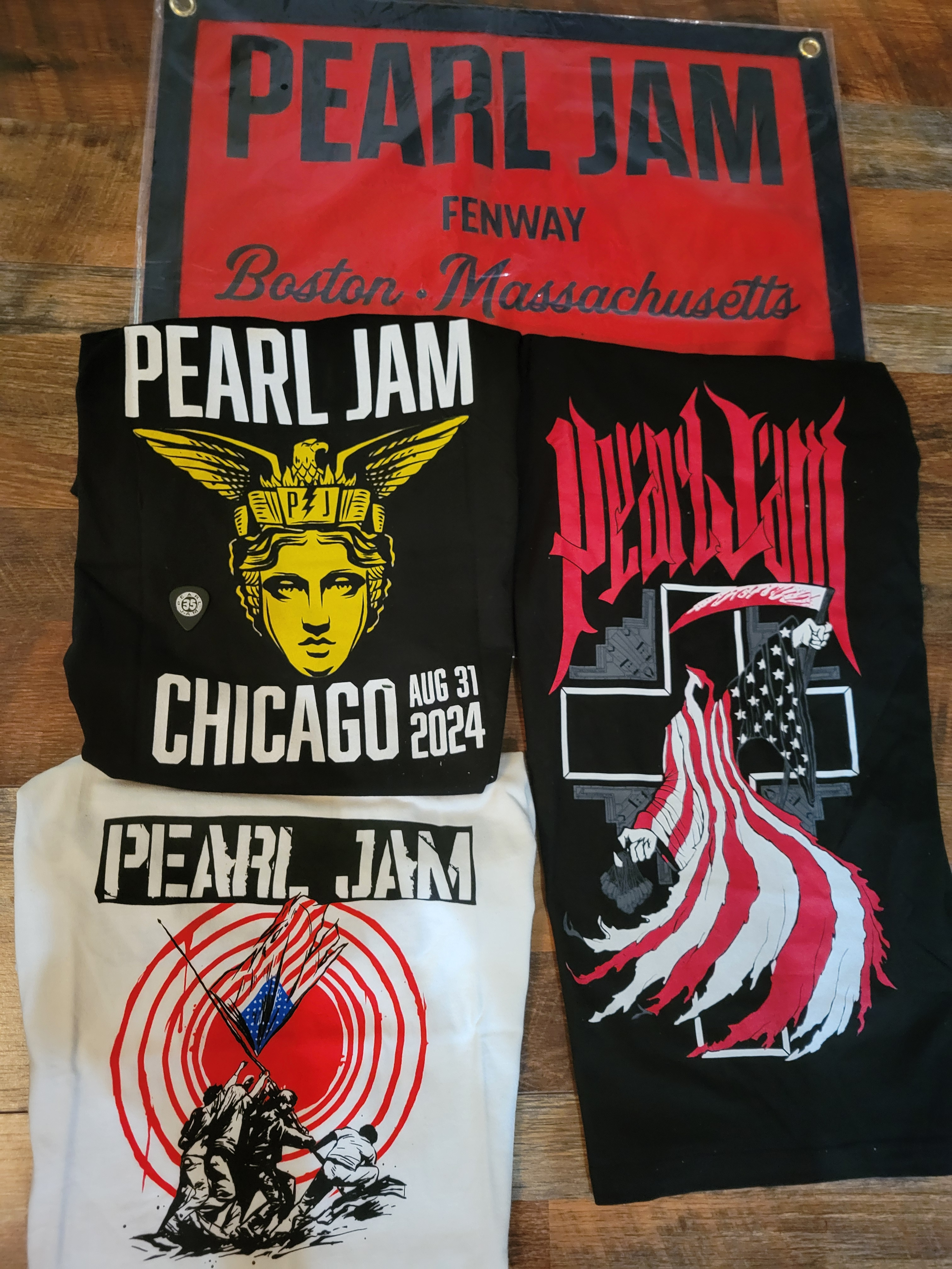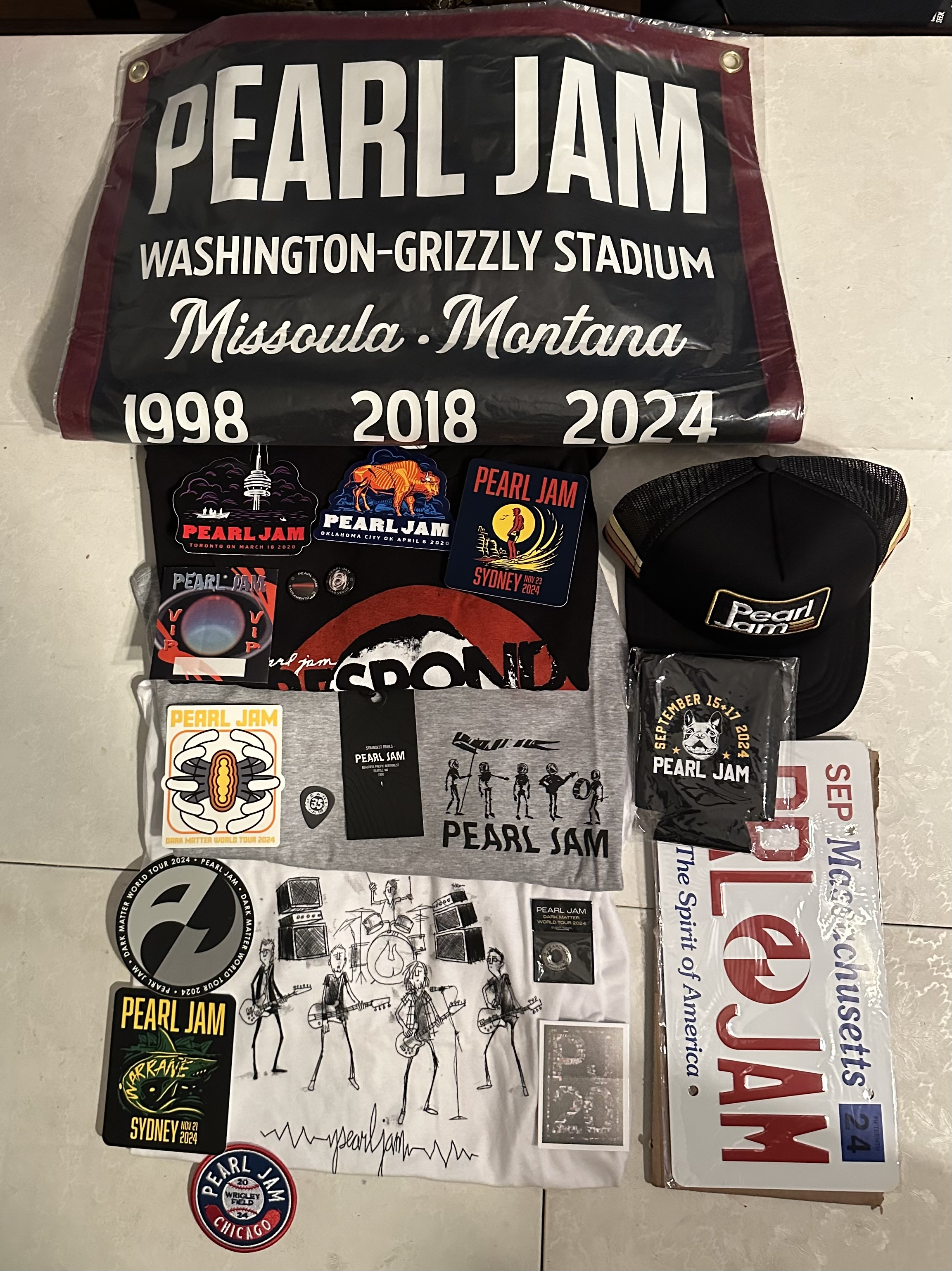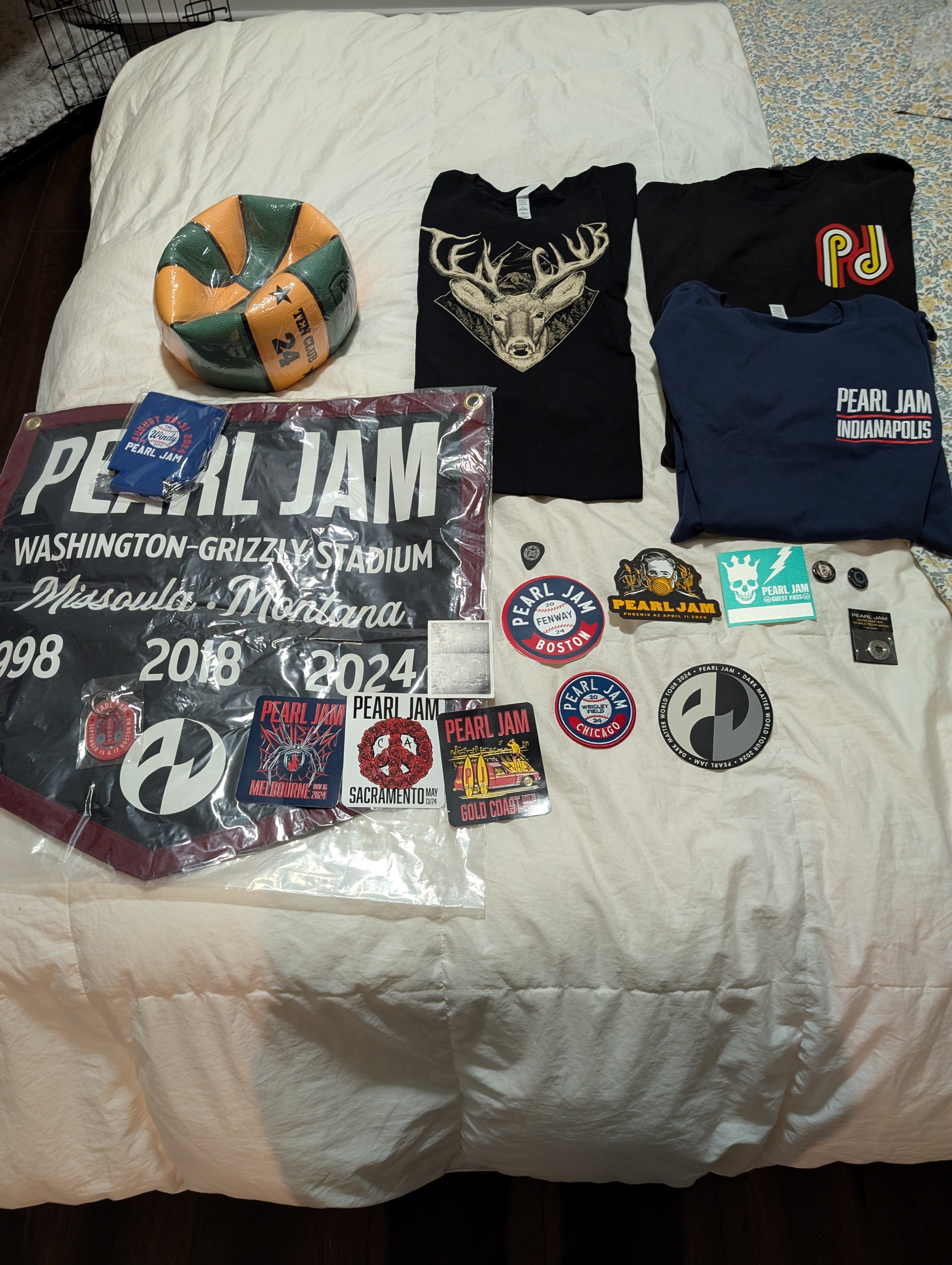 Nice little haul. Men’s medium shirts are for my kid. Basketball and Fenway banner are definitely up for trade since I already have them.Randall's Island, NY 9/29/1996, Randall's Island, NY 6/8/1997 (Ed and Mike), Jones Beach, NY 8/23/2000, Los Angeles, CA 7/10/2006, Hartford, CT 6/27/2008, Los Angeles, CA 10/6/2009, San Diego, CA 11/21/2013, Los Angeles, CA 11/24/2013, MSG, NY 5/1/2016, Seattle, WA 8/10/2018, Los Angeles, CA 5/6/2022, Los Angeles, CA 5/7/2022, Camden, NJ 9/14/2022, St Paul 8/31/2023, St Paul 9/2/2023, Las Vegas 5/18/24, MSG NY 9/3/24, Philadelphia PA 9/9/24, Ohana CA 9/27/24, Atlanta, GA 4/29/25, Pittsburgh, PA 5/16/25, Pittsburgh, PA 5/18/250 -