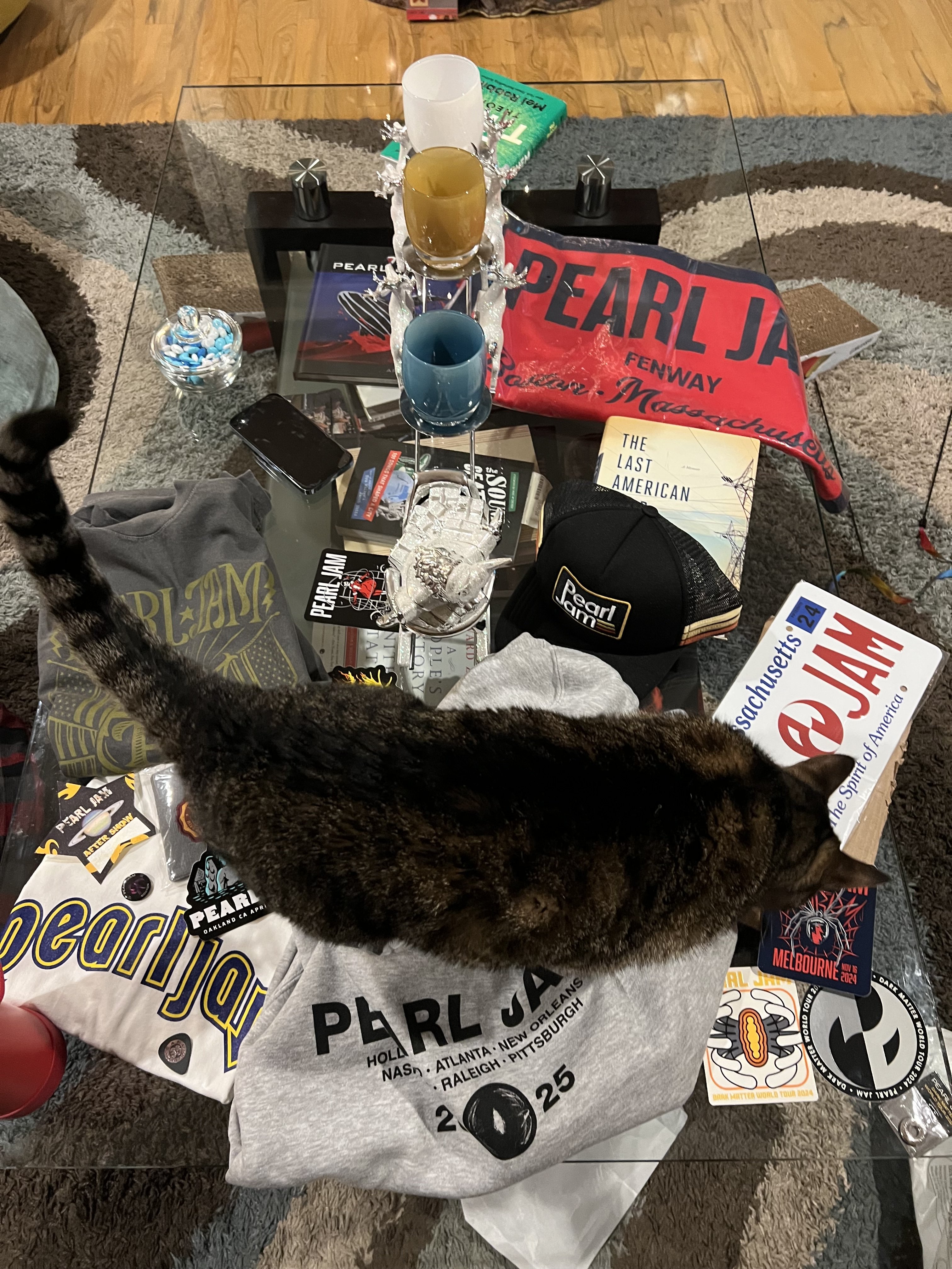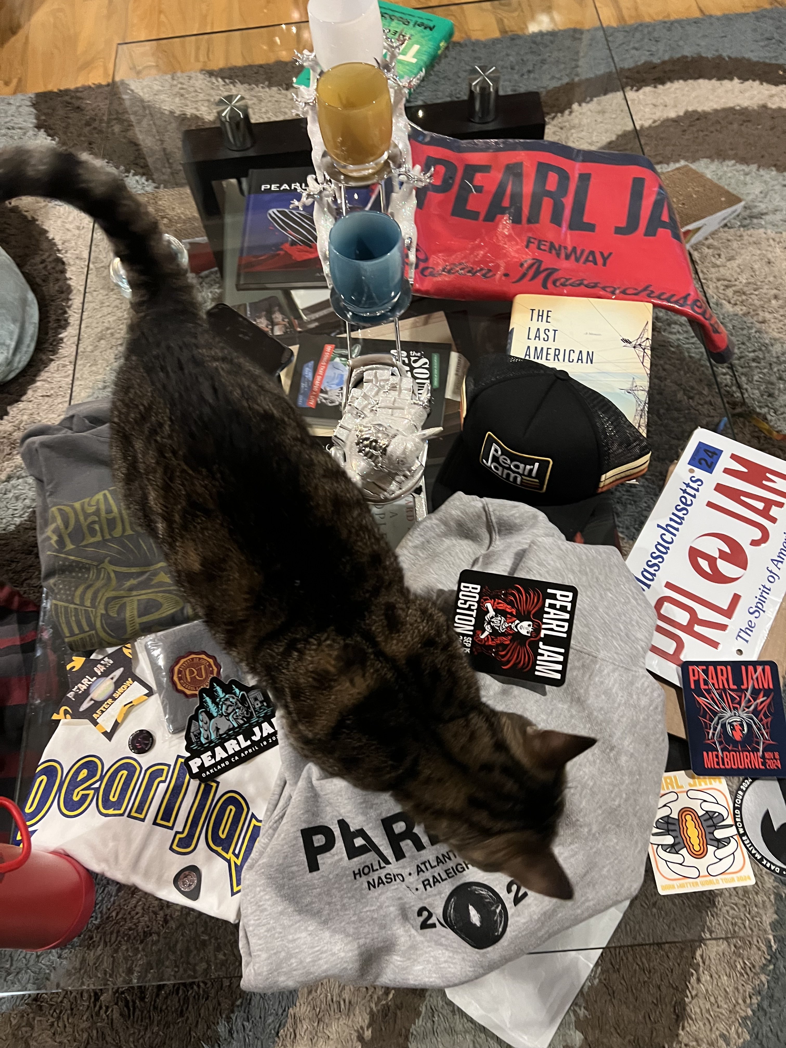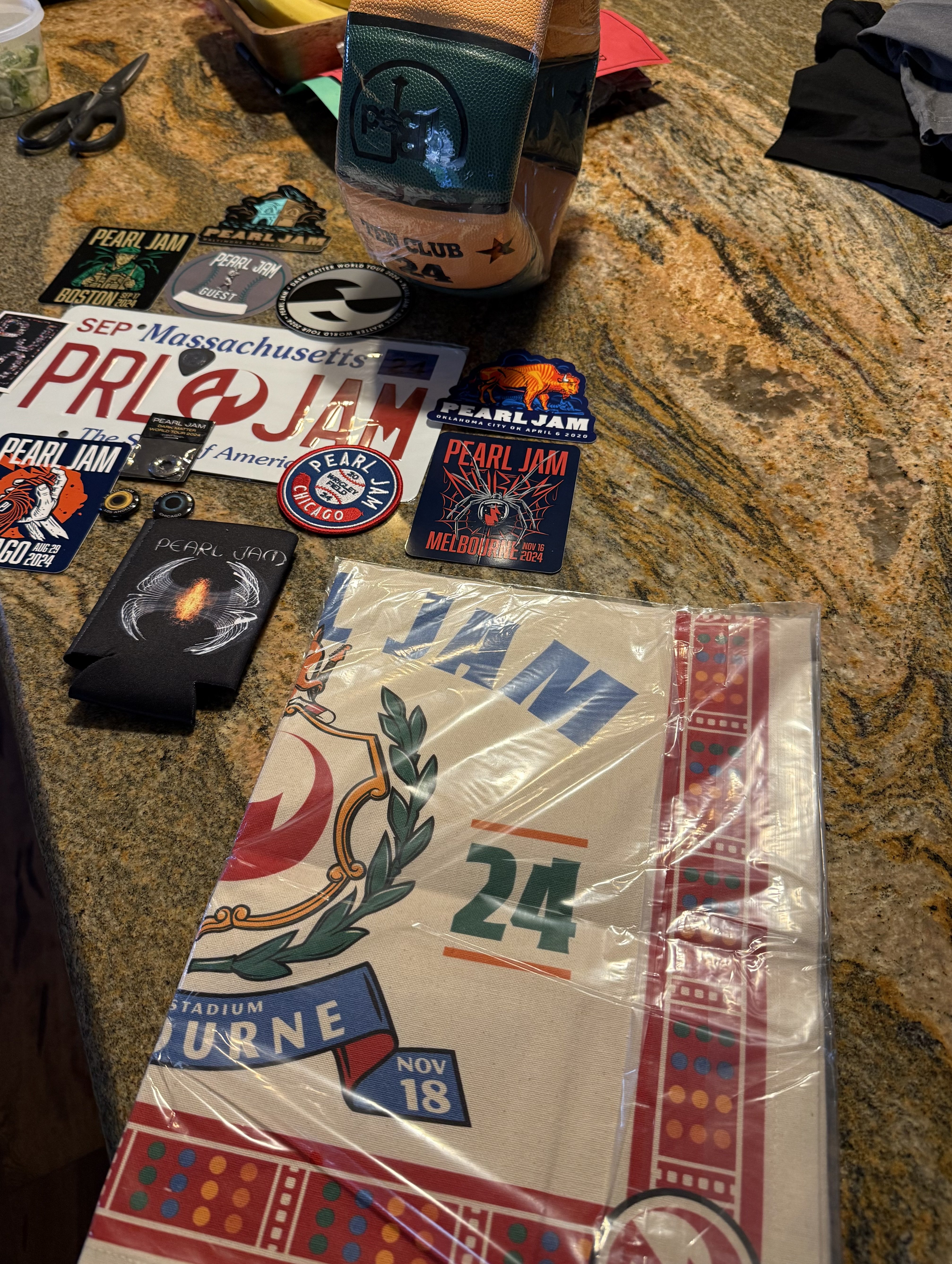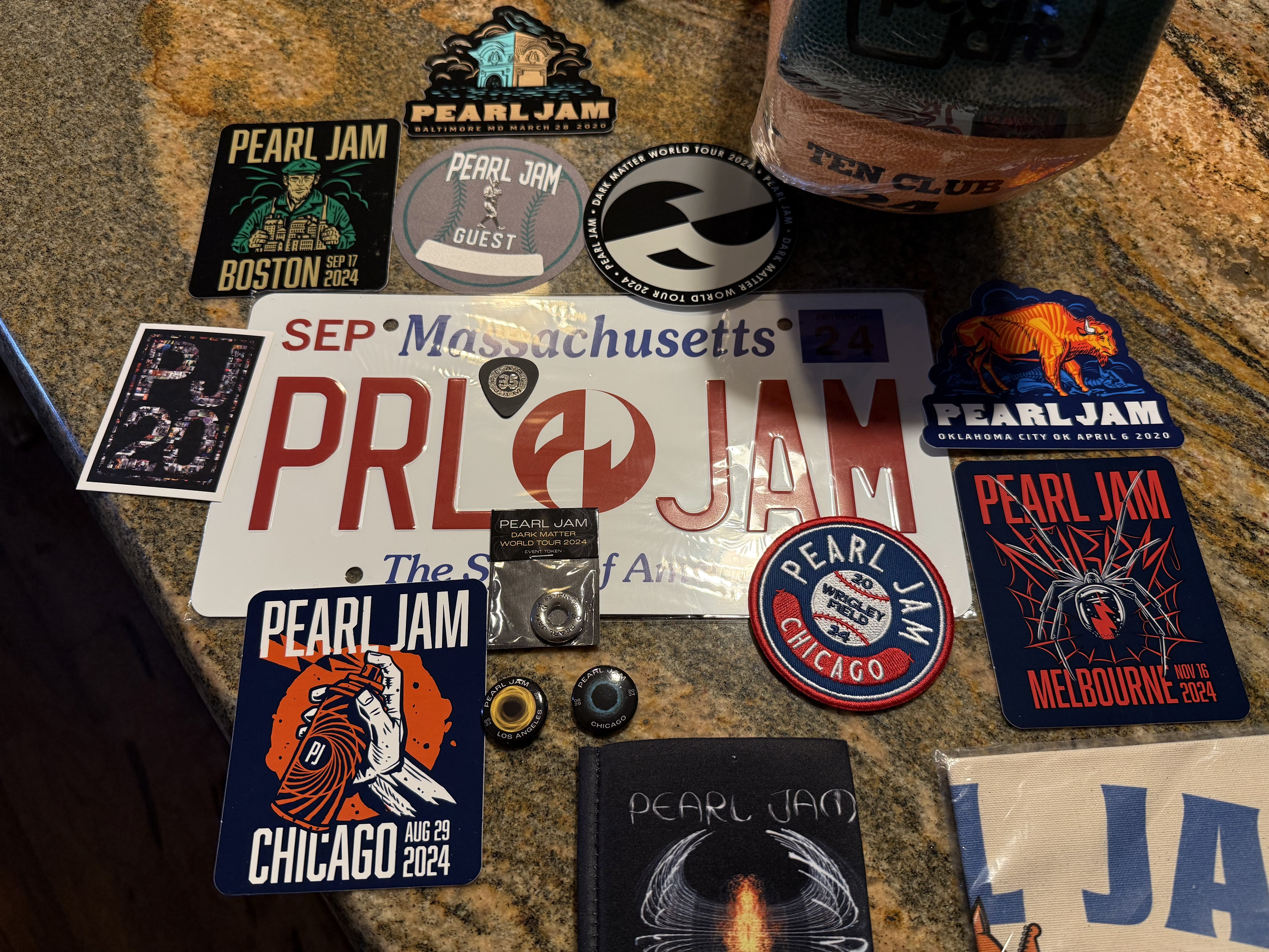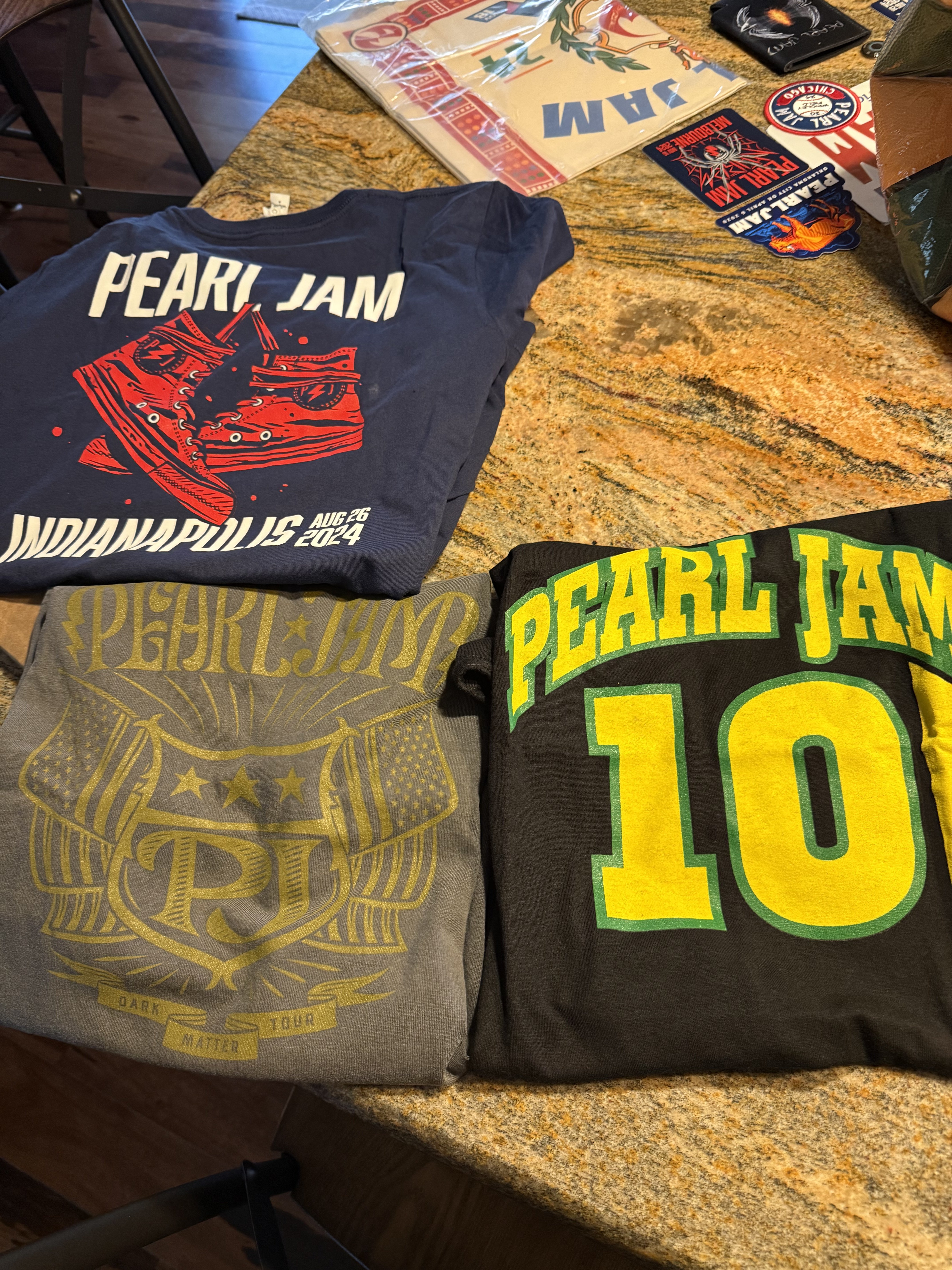 In search of Pitt Night 1 token (long shot), medium shirts: Strangest tribes, Dark Matter Tour hoodies, Fenway banner, Ten club shirts, Ten club patches or the surf/boonie hat.