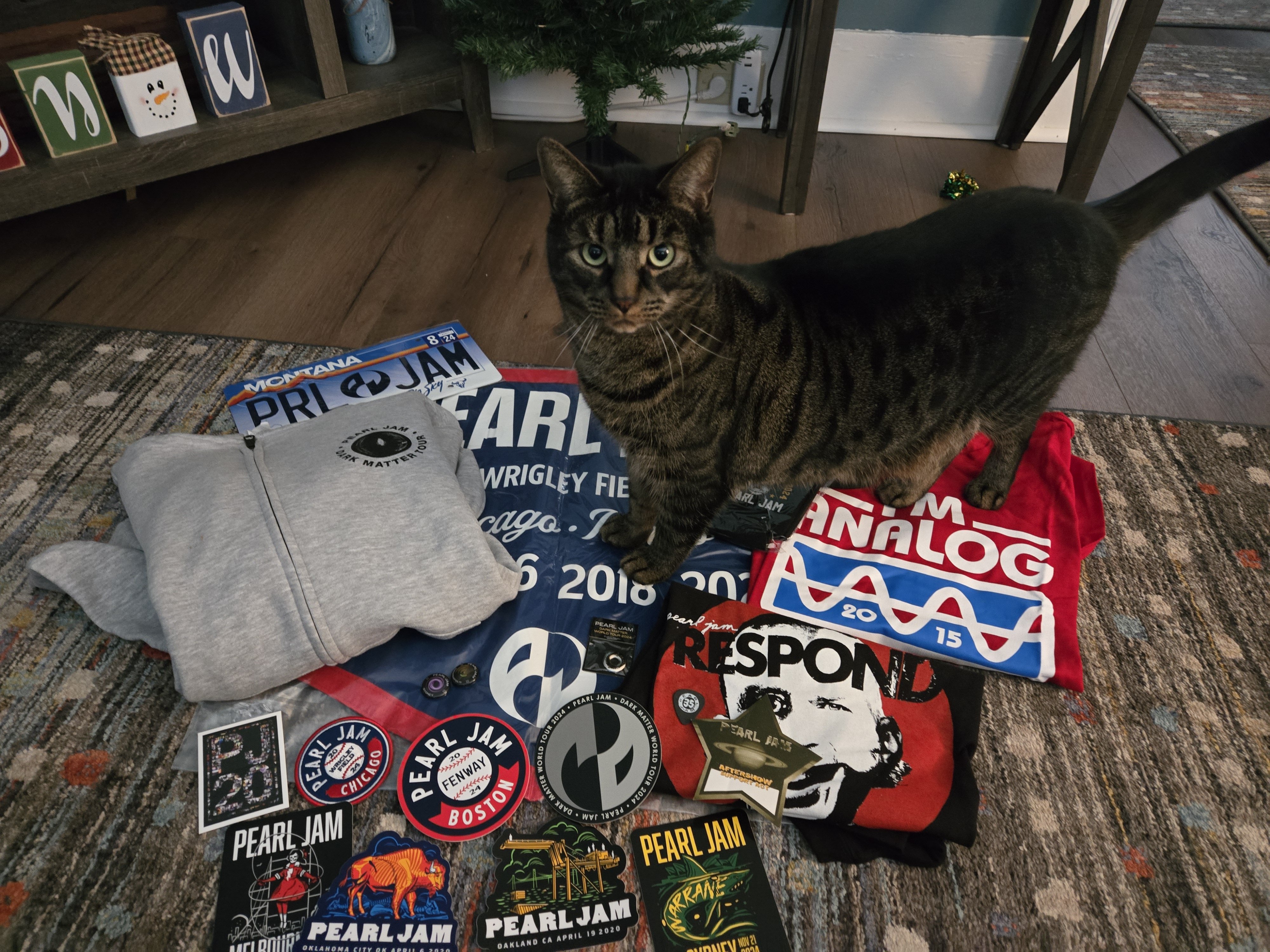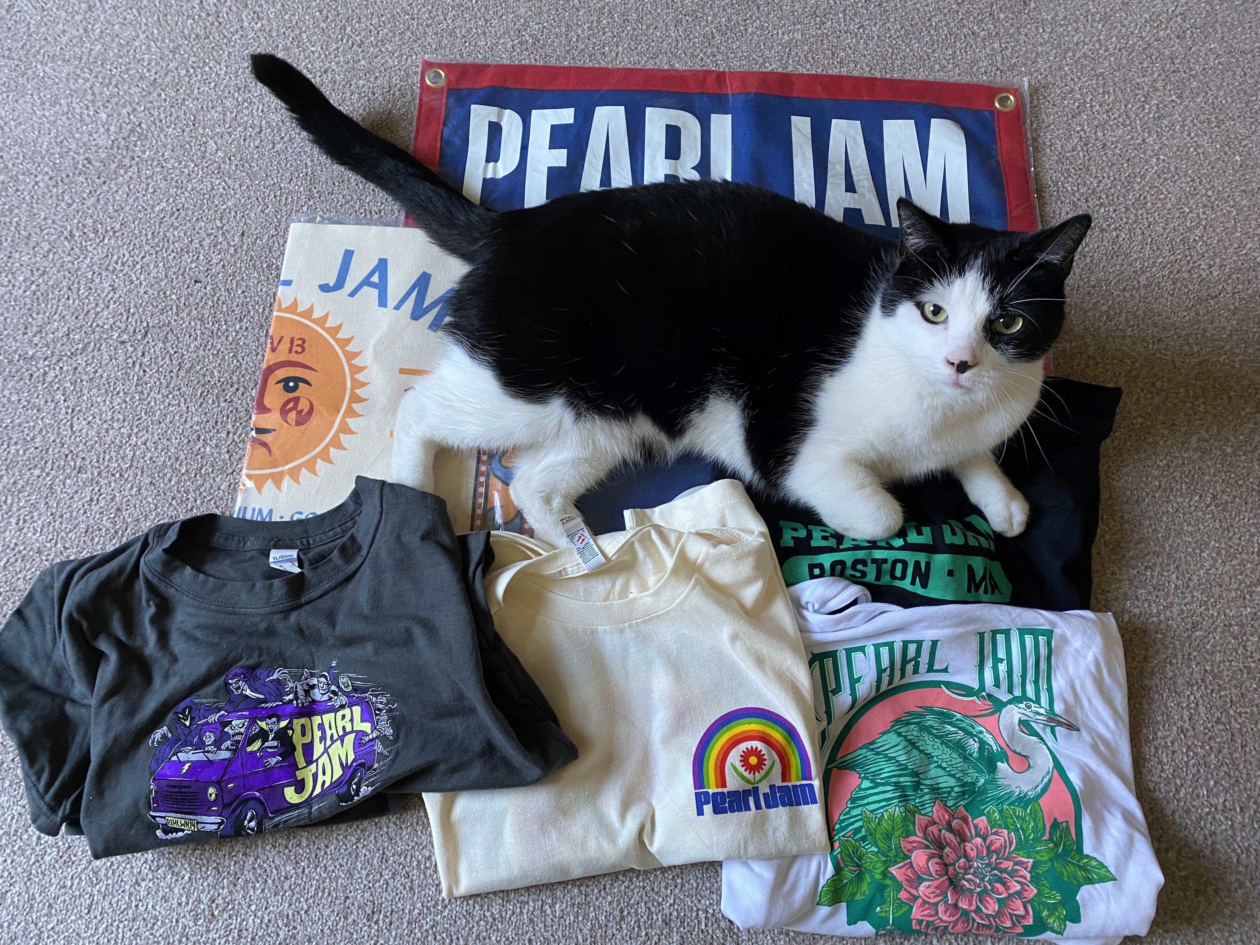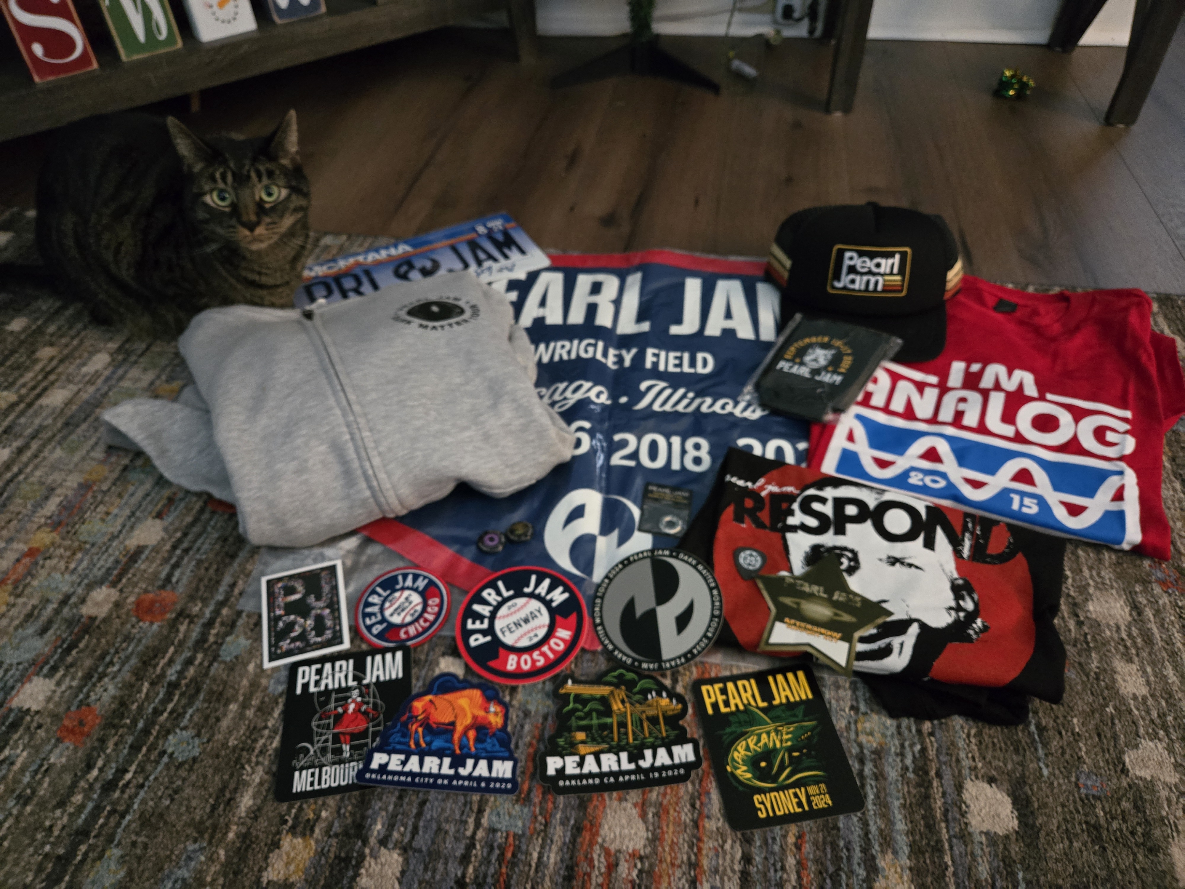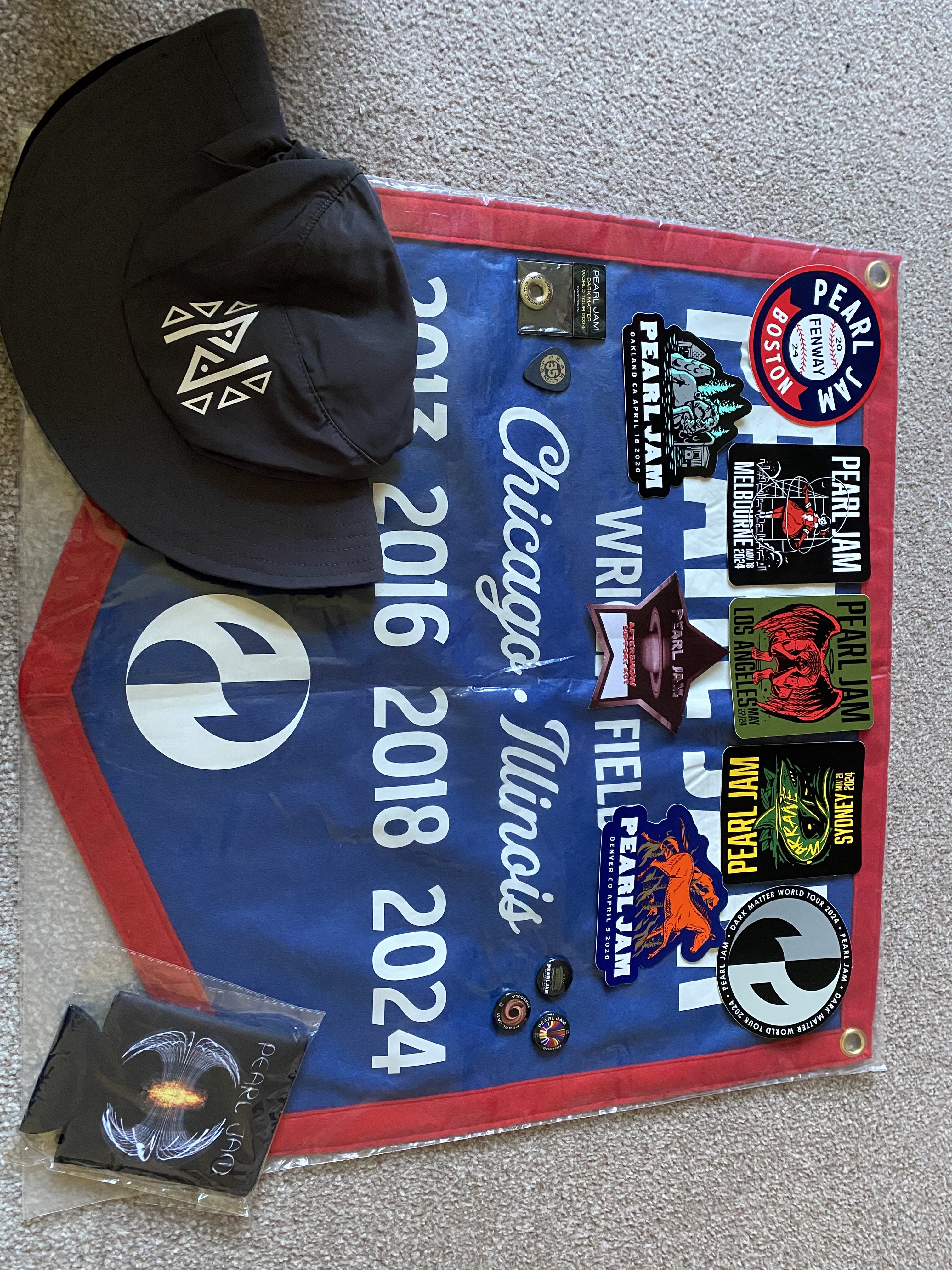 Vancouver event jerseyMissoula bannerSurf hatAll Access passT-Shirts - Indianapolis & 2023Stickers - Ottowa, Melbourne, Indianapolis & Sydney. Dark Matter tour x2, PJ20Wristband - MissoulaBoston - KeyringBadges - Sydney, IndianapolisEvent token - Seattle 28th May