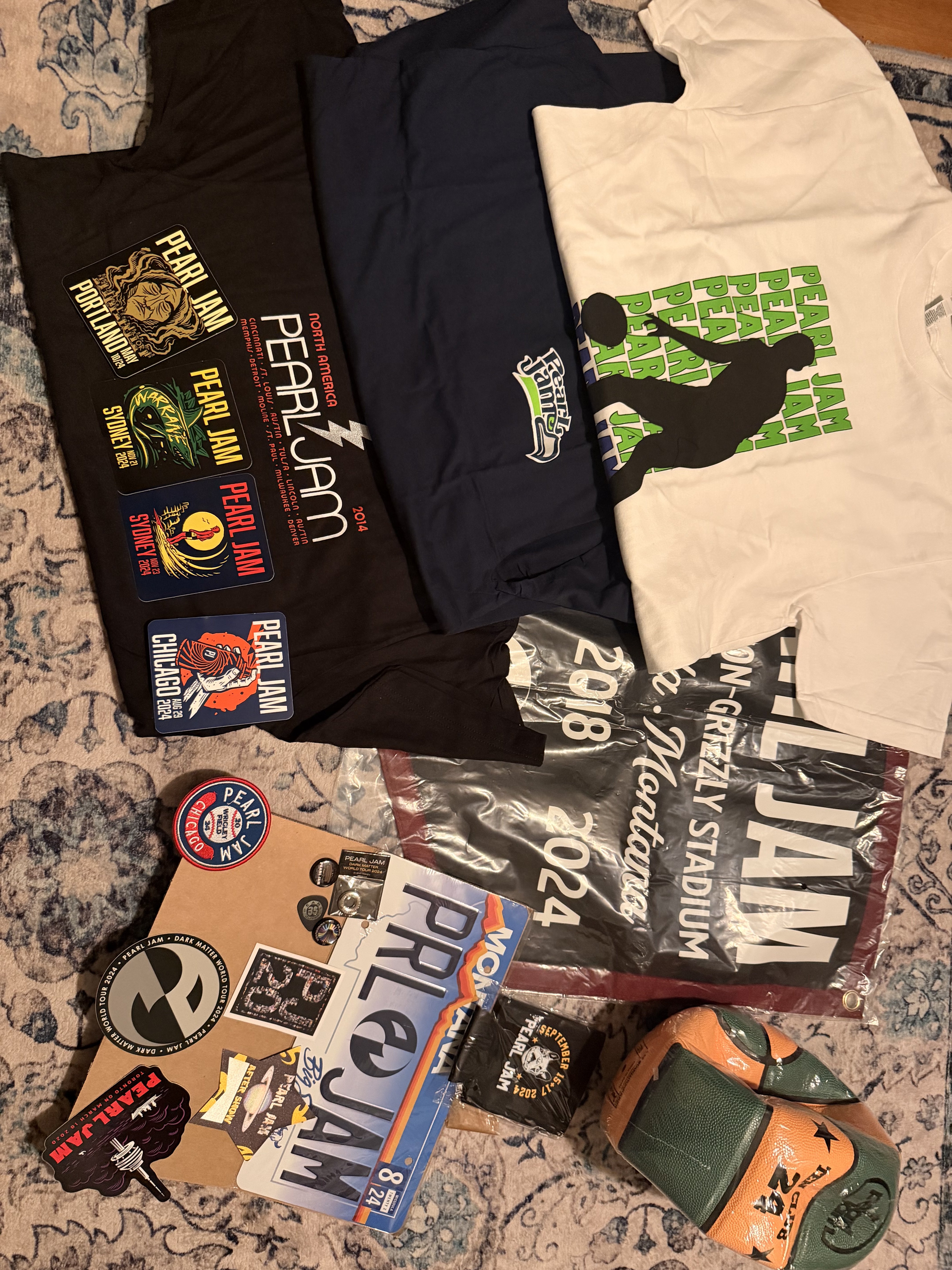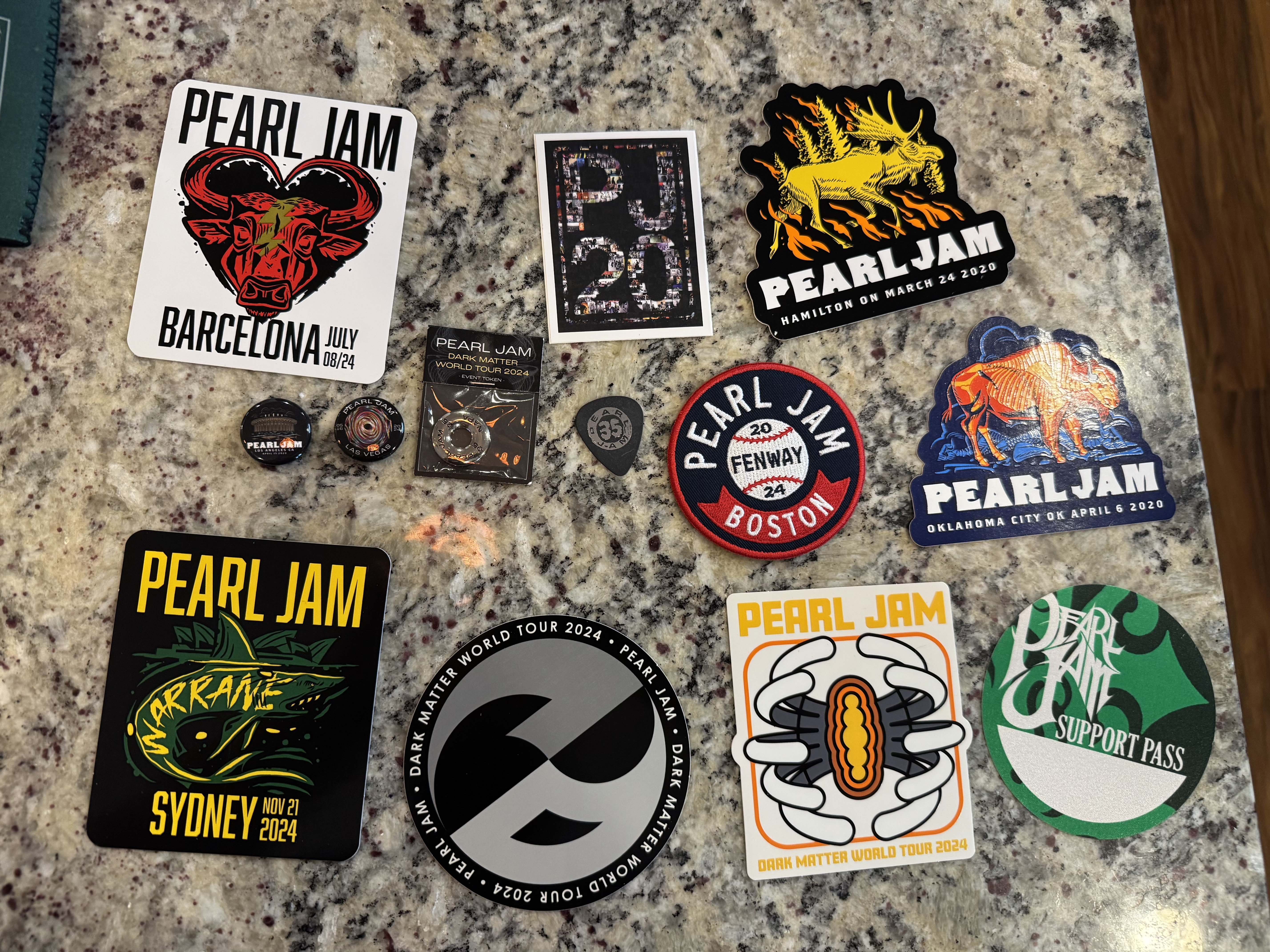 From across my bags, I am willing to trade the 11/16/24 Melbourne sticker, the Fenway patch, and the two generic Dark Matter Tour stickers, the Missoula koozie, and the Massachusetts plate.