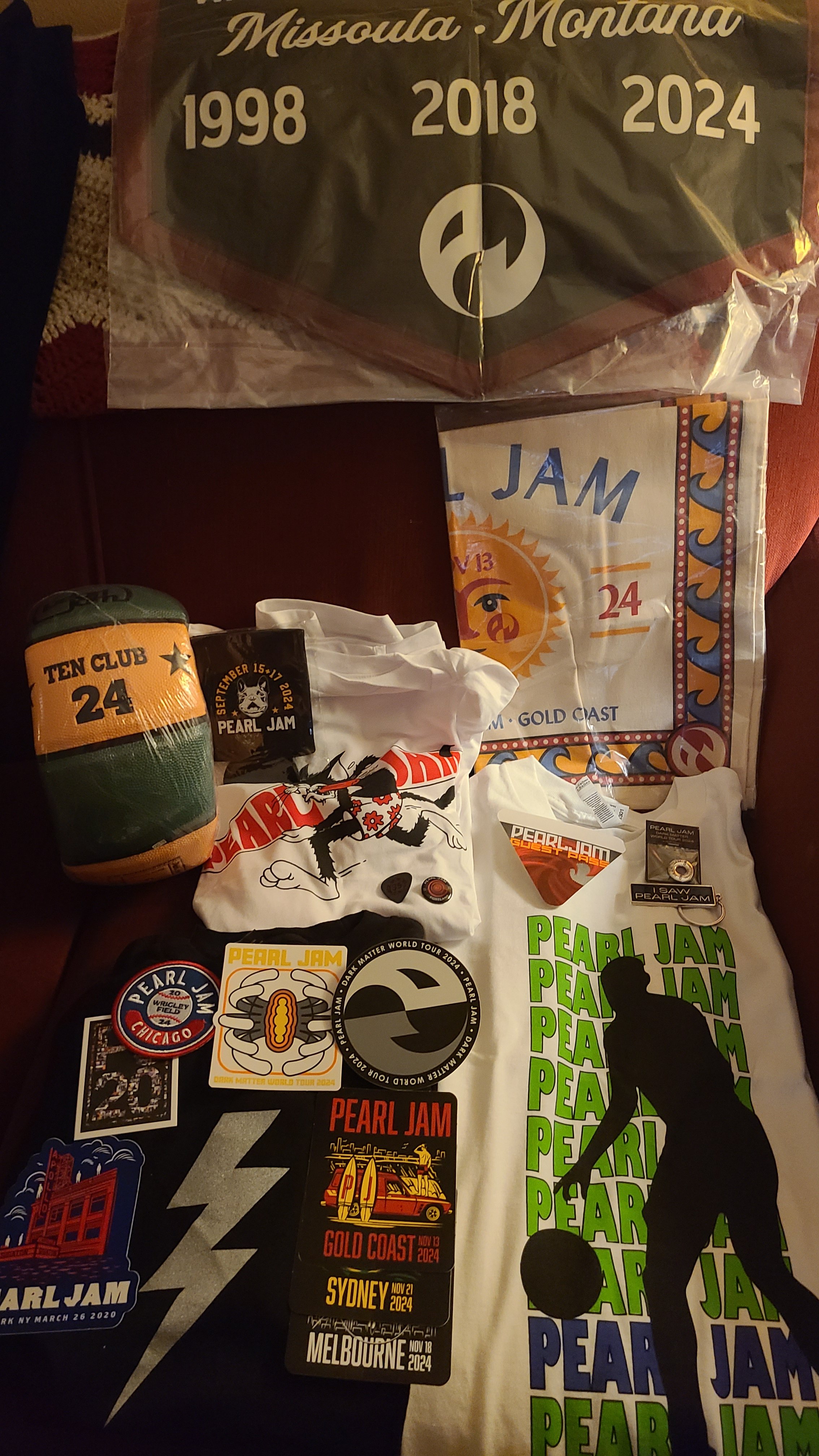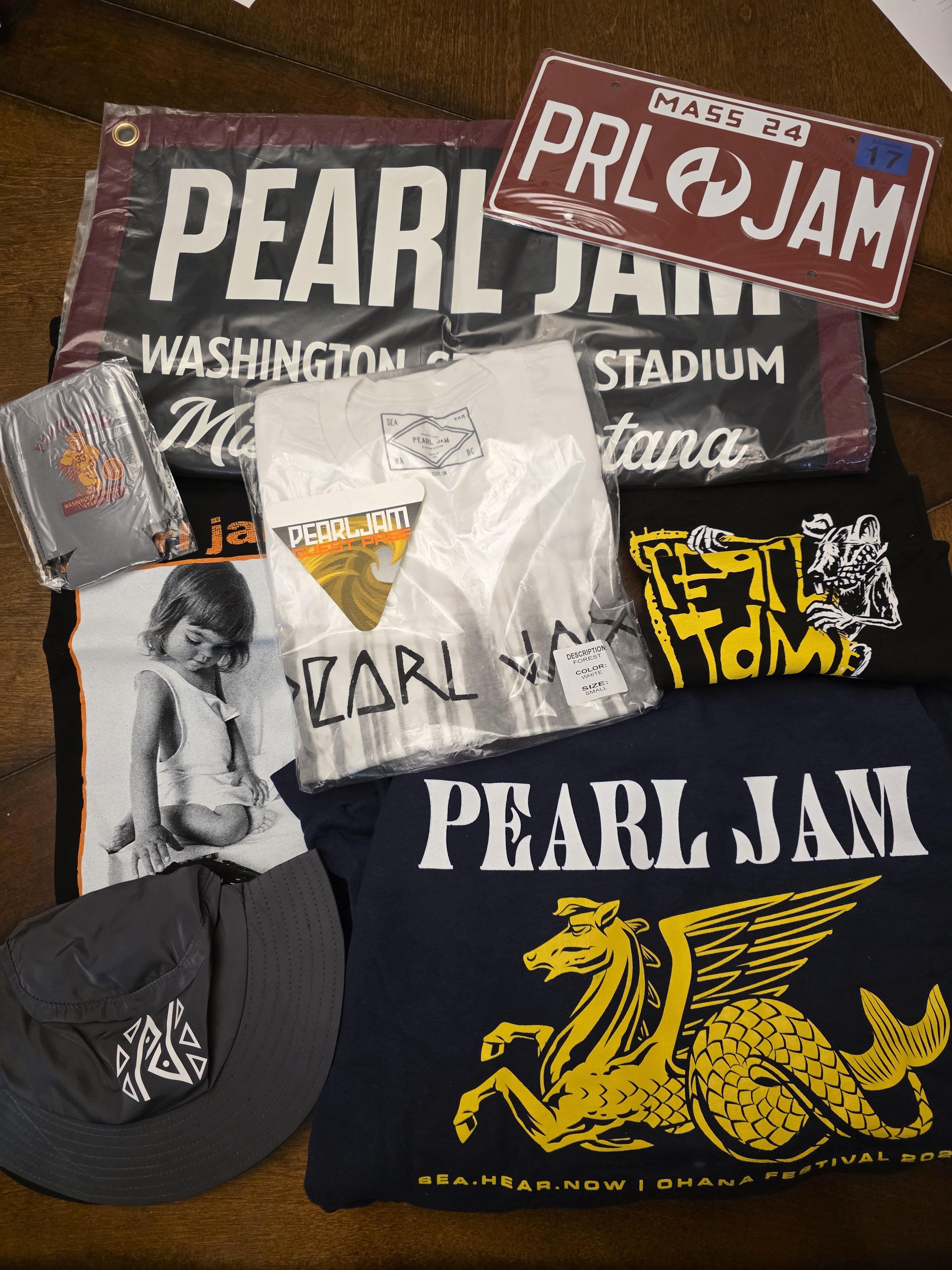 I can also offer a new White XL 2018 Wrigley 2 setlist shirt (the white one where they opened the show with Given to Fly in the rain). I took a half day off of work to get that setlist shirt, so I bought a couple extras :)