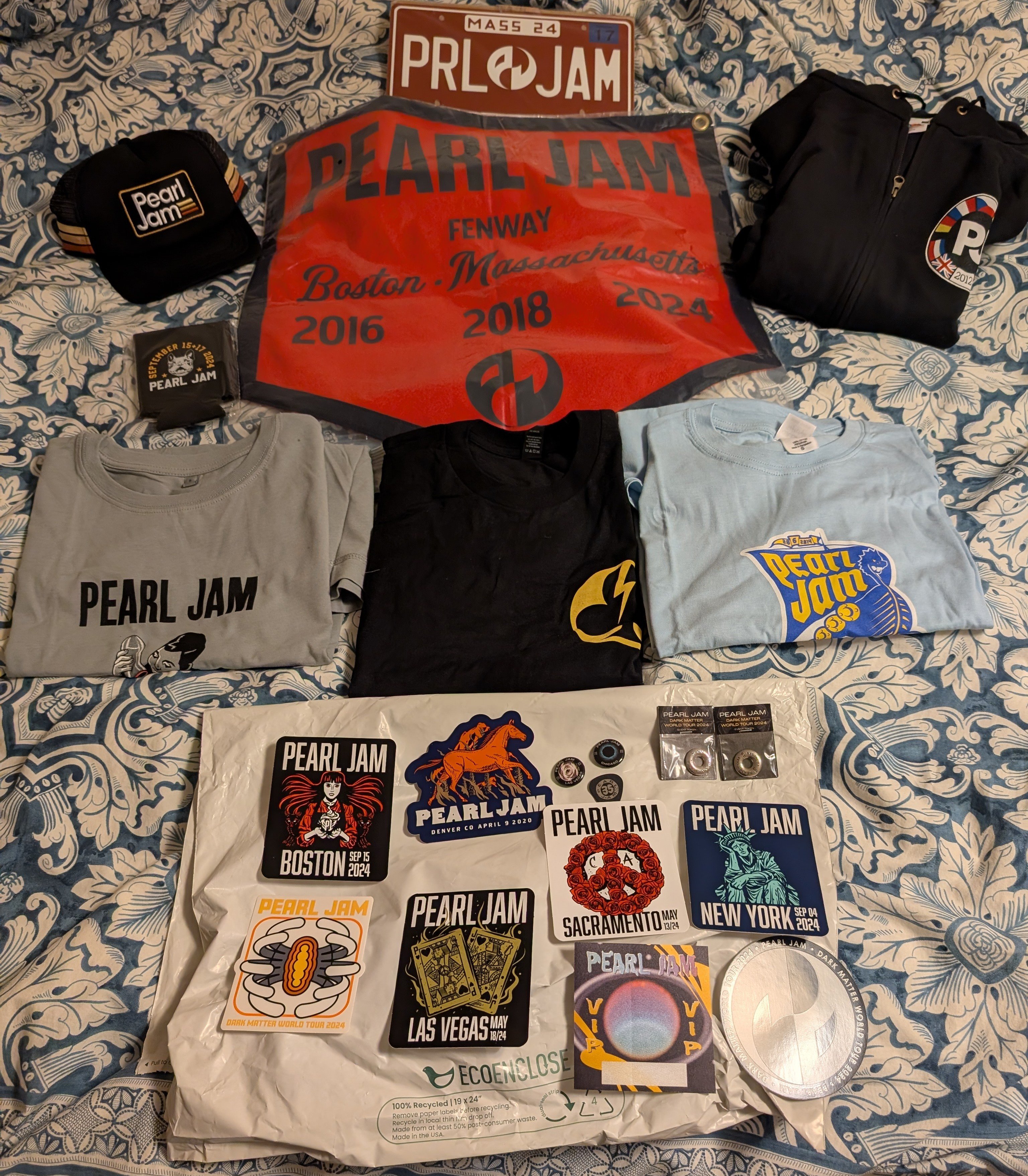 From across my bags, I am willing to trade the 11/16/24 Melbourne sticker, the Fenway patch, and the two generic Dark Matter Tour stickers, the Missoula koozie, and the Massachusetts plate.