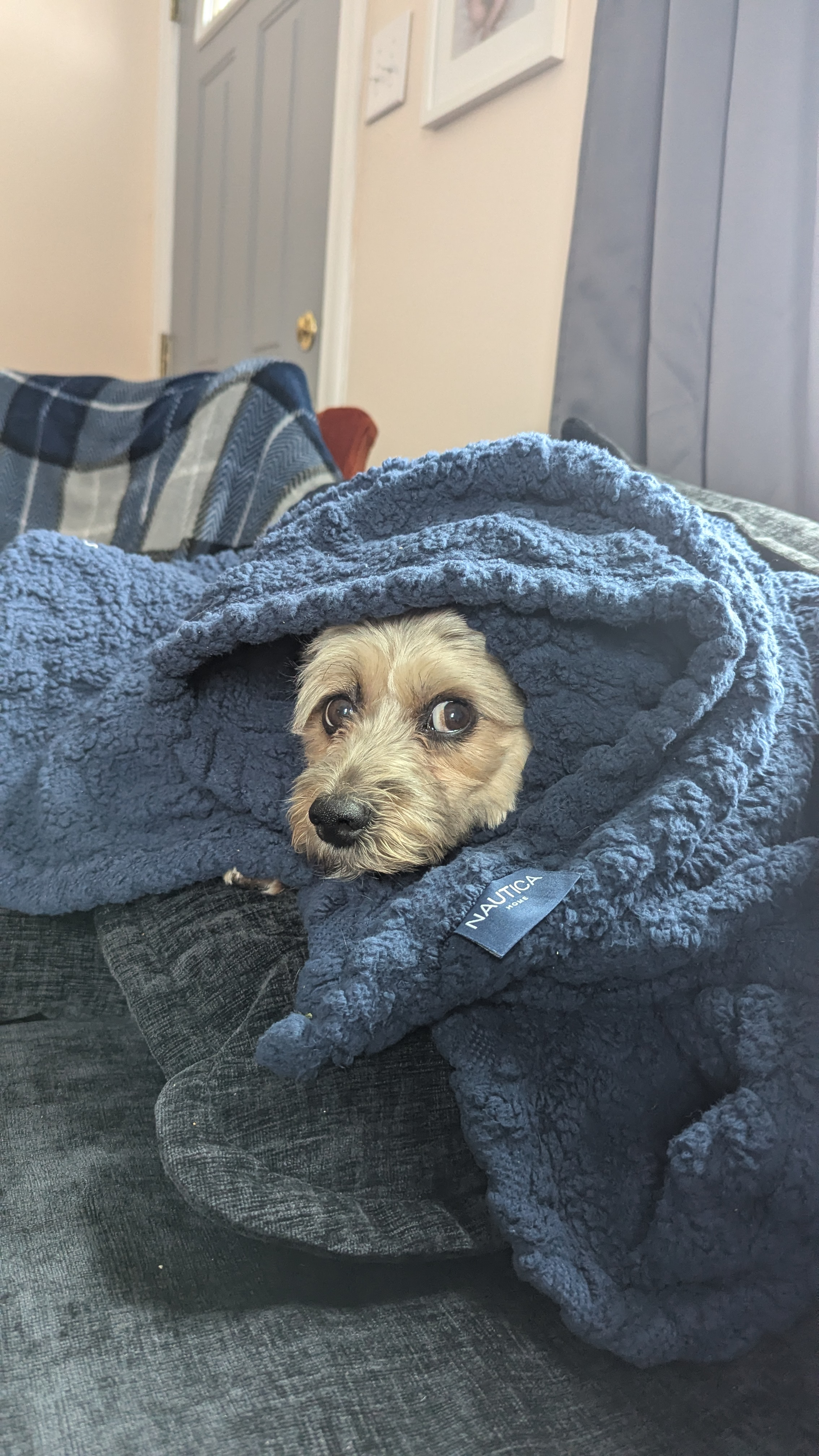 It is cozy and warm, fits more like a large tho.